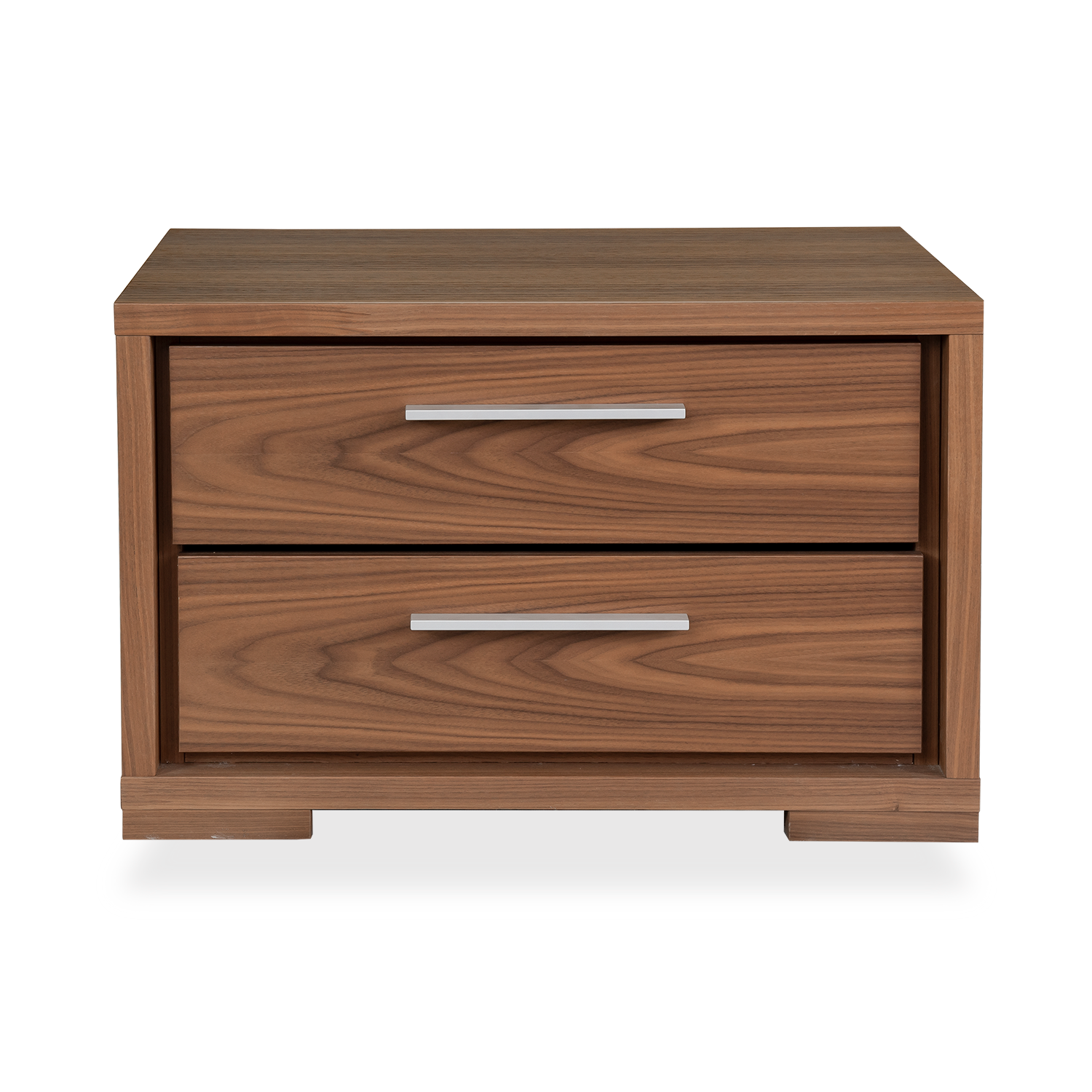 [0] => The Sonoma Nightstand, available in walnut with nickel handles, features clean lines and two drawers for convenient storage. Sonoma's design is simple and elegant and is at home in contemporary, transitional, and traditional design environments. Pair it with the Sonoma king or queen bed, double dresser, and high chest for a complete bedroom setup.