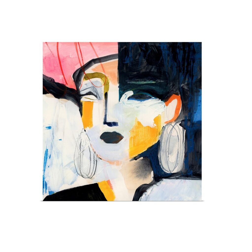 The Sorella II Wall Art features the abstract face of a woman rendered in bold colors and broad brush strokes. A combination of warm blush tones and dark blues form her refined profile, while subtle, elegant details such as her earrings bring a sense of sophistication and artistry. Sorella II has a gloss finish and bleeding borders.