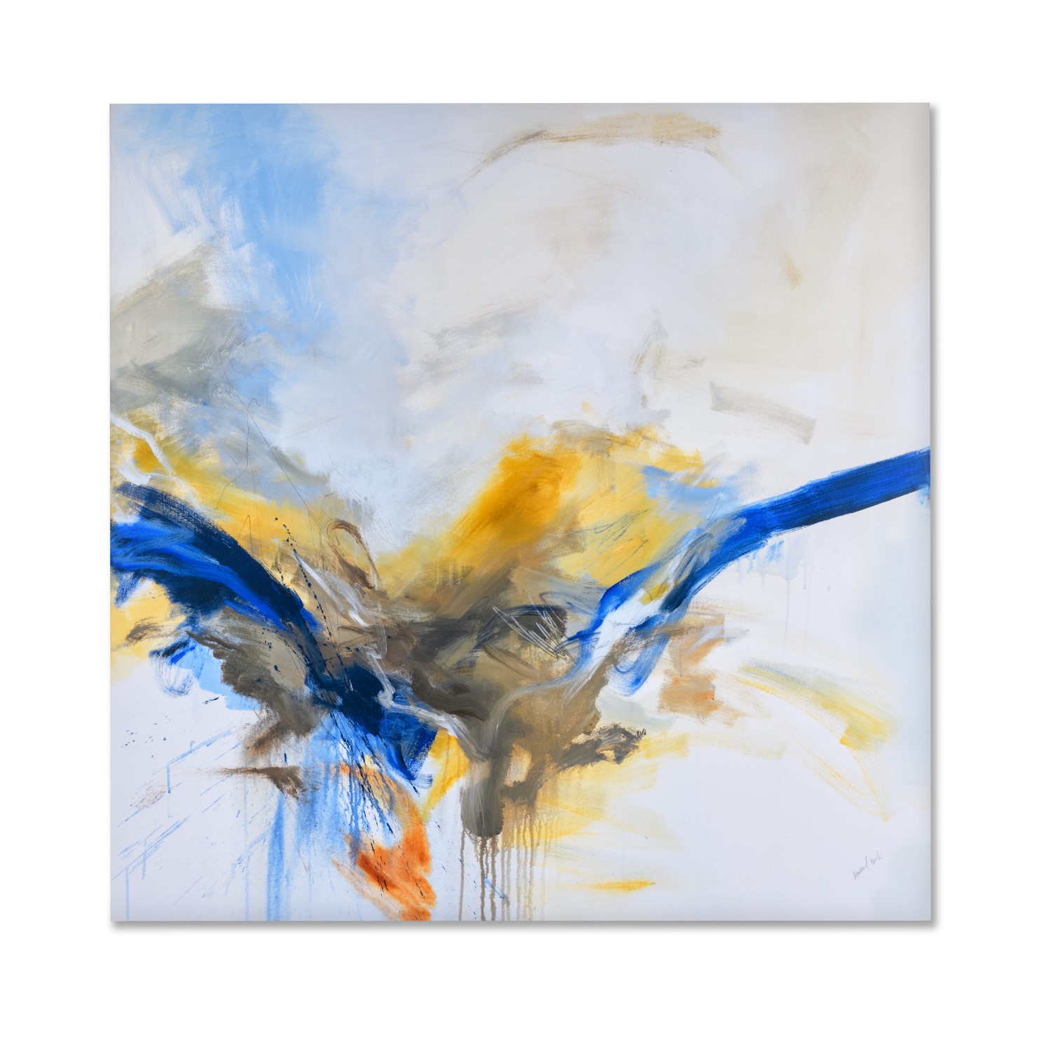[0] => The Sparks Between Us I Wall Art brings a bright burst of blue and yellow joined subtly by a watercolor effect. The muted background only further enhances the "sparks" between and amongst these colors. Peaceful yet energetic, this piece will complement multiple hues in its surrounding environment.