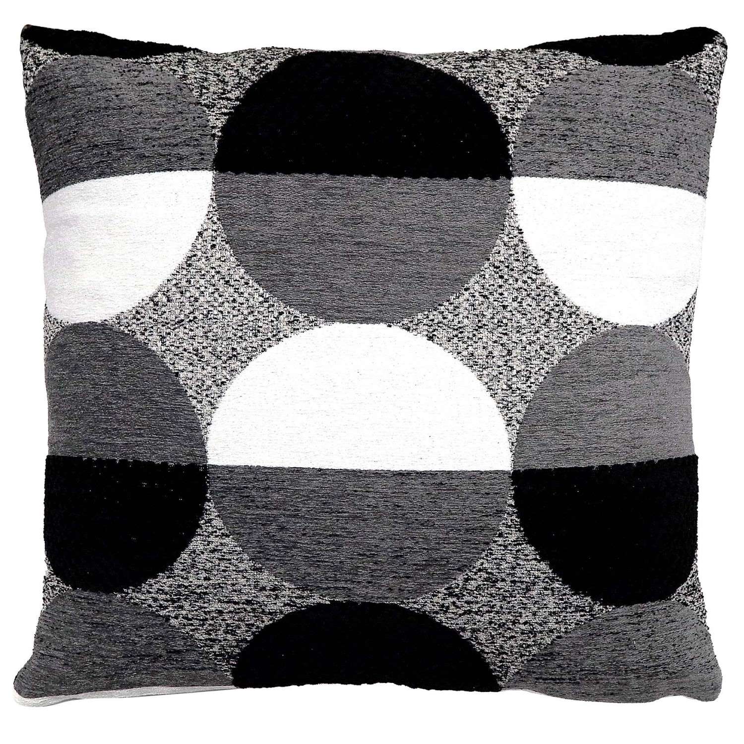 The Sphere Pillow features a fun design of bisected circles in a monochrome color scheme of black, white, and grey. Smoother sections with a velvety feel contrast with raised sections that have a lightly knobbled, fuzzy texture. A feather filling gives this pillow a satisfying plumpness, while a discreet zipper allows the cover to be removed for spot-cleaning if needed.