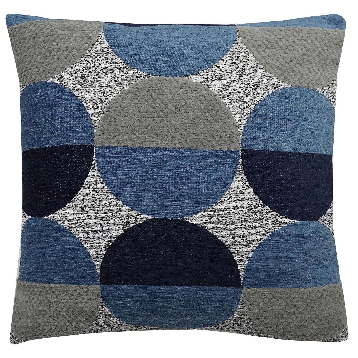 The Sphere Pillow features a fun design of bisected circles in shades of light blue, dark blue, and grey. Smoother sections with a velvety feel contrast with raised sections that have a lightly knobbled, fuzzy texture. A feather filling gives this pillow a satisfying plumpness, while a discreet zipper allows the cover to be removed for spot-cleaning if needed.