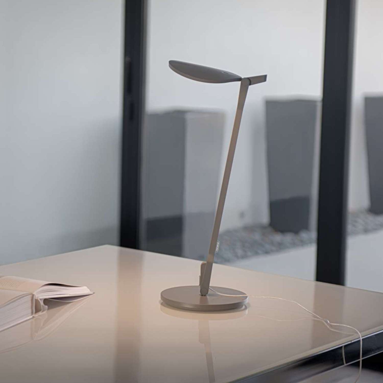 With superior flexibility and fluid motion, the award-winning Splitty LED Desk Lamp features a dynamic design that enables its head and body to independently adjust to your ideal angle. Its curved, droplet shaped head evenly diffuses LED light, making it suitable as a task lamp or as ambient mood lighting. A built-in USB port allows you to easily charge your electronic devices, while a singular button allows you to dim the brightness and turn the lamp on and off. Created with the environment in mind, Splitty is also made from fully recyclable aluminum and water-based paint, and has mercury-free LEDs that consume minimum power. With a versatile structure and matte grey hue, Splitty is as fluid as the drop of water it's inspired by.