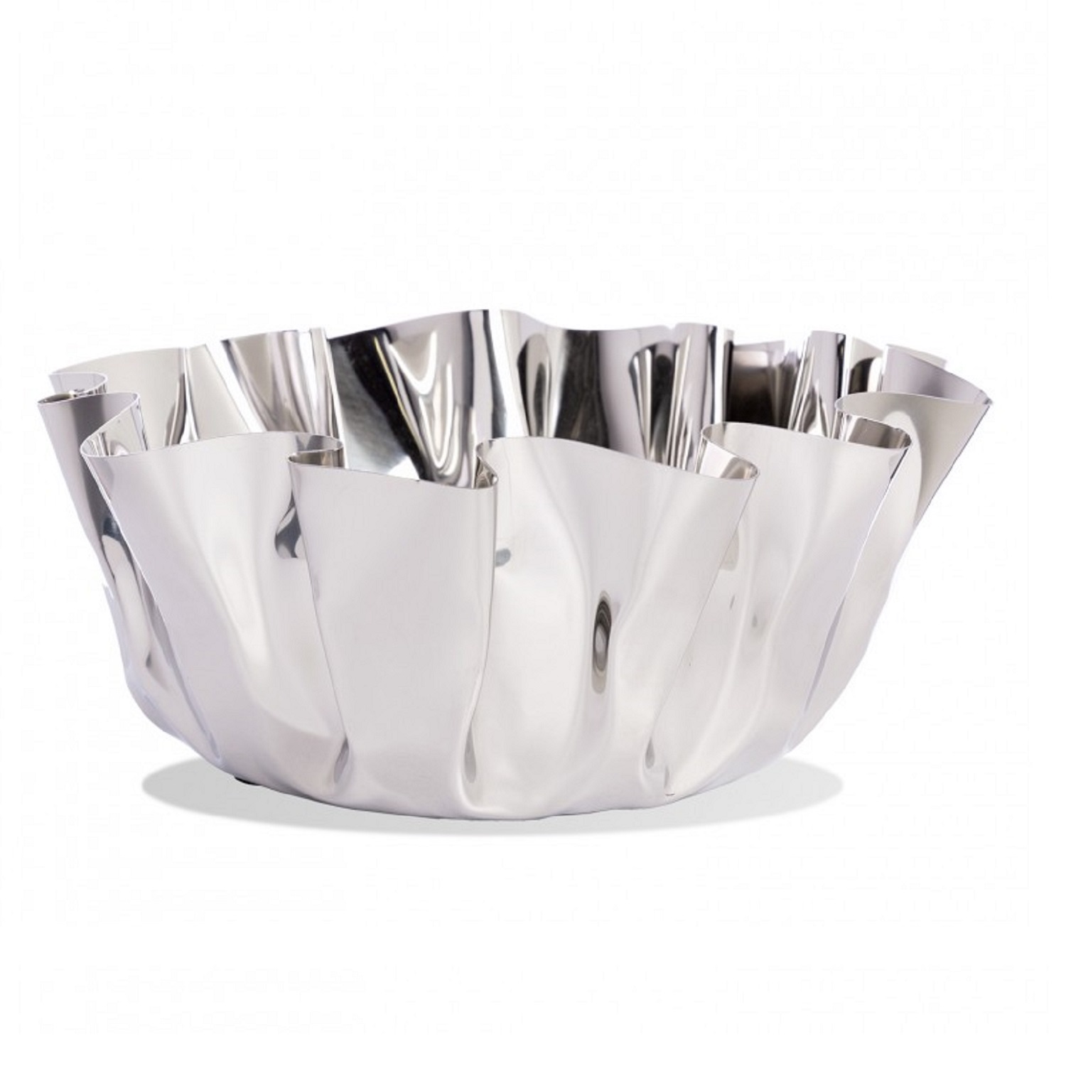 The Stainless Steel Large Bowl has a reflective, polished finish and a contemporary look with a wavy silhouette reminiscent of folded paper. Handcrafted and outdoor-friendly, this bowl is an ideal accent piece for both your living room and your patio. Hand wash only.