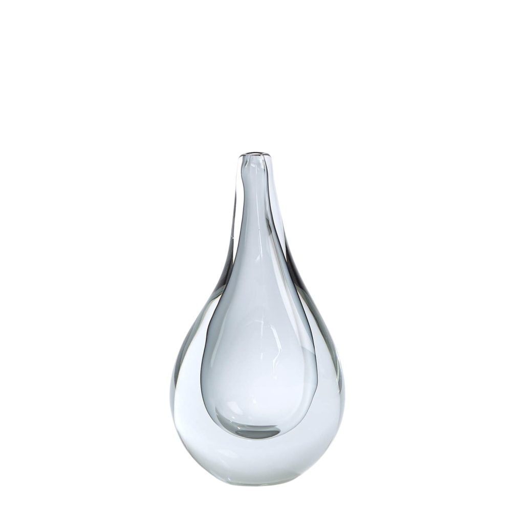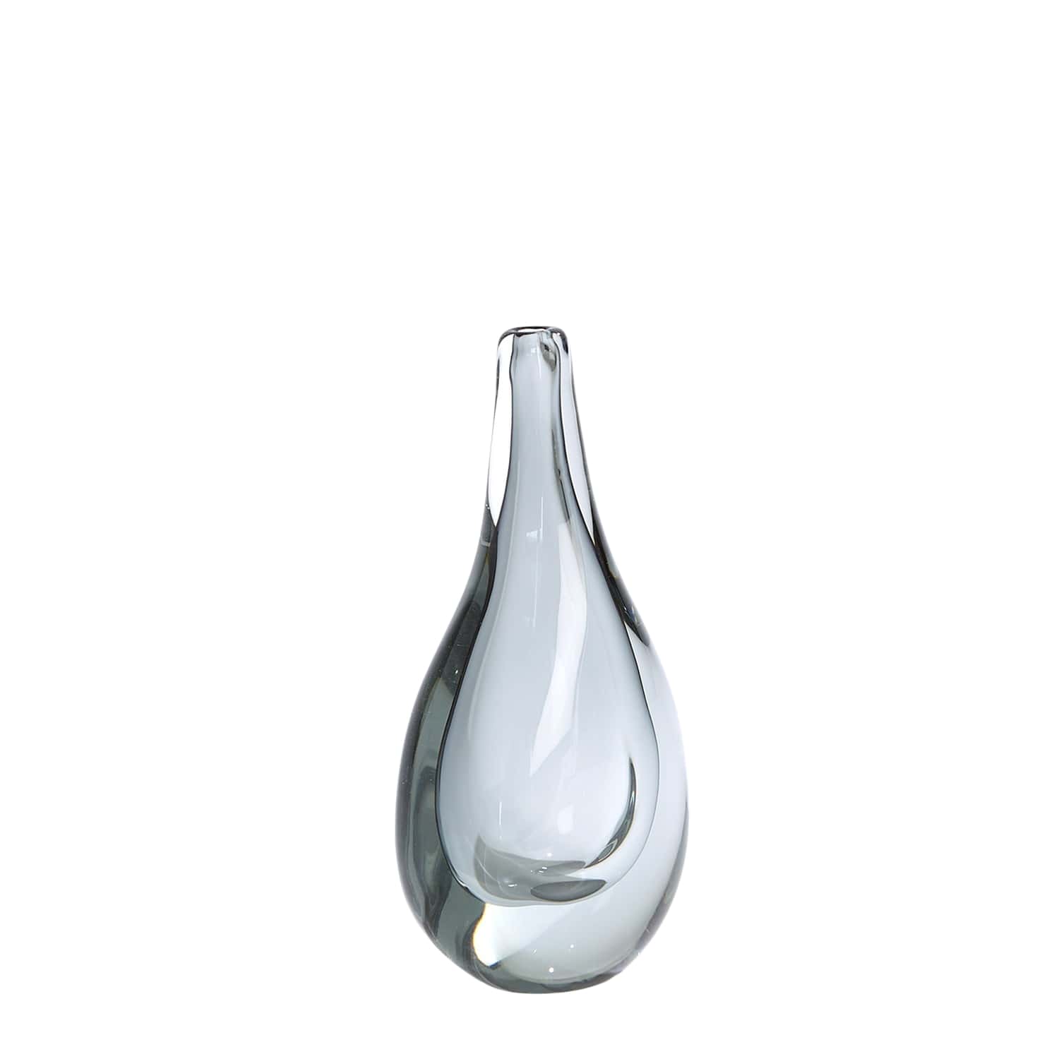 [0] => The Stretched Neck Small Vase features mouth-blown art glass in grey and a teardrop shape with organic contours. With its soft curves and subtle coloring, this watertight vase makes an ideal minimalist accent for the modern home or office.