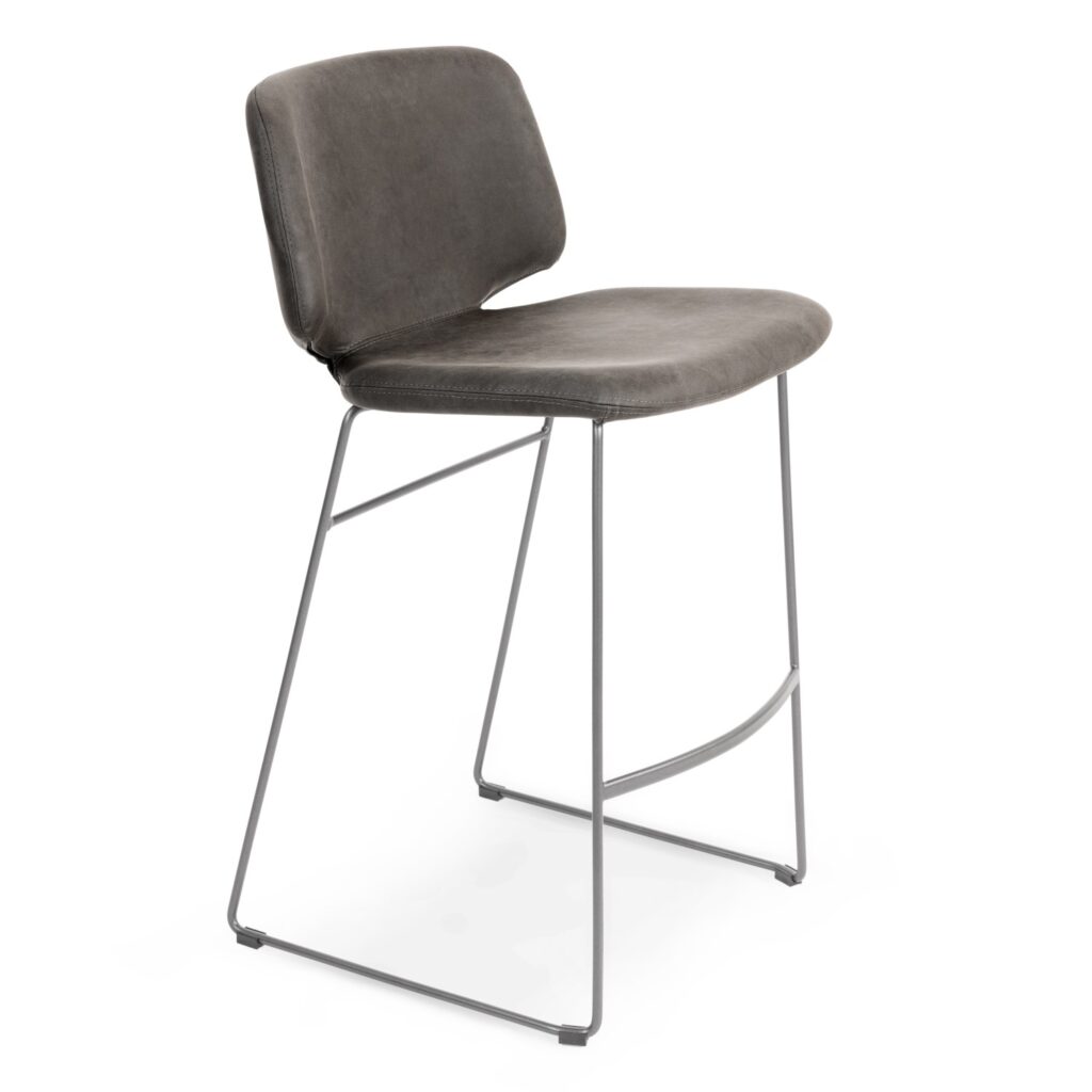 [0] => The Style Barstool is chic and minimalist, with a sleek anthracite metal frame and a seat and back fully upholstered in charcoal Nobuko Ecopelle artificial leather. The gently flared arms of the seat back add both support and style, while the padded seat ensures your comfort. With its clean design and minimalist palette, the Style Barstool can integrate well into any design environment.
