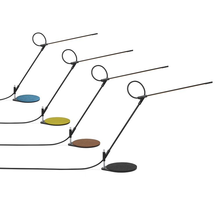 [0] => The Superlight is a task light that adapts to the needs and design of both home and work environments with beauty, ease, and maxiumum functionality. The Superlight glides and moves easily along three axes with its advanced joint construction, and the lens rotates up to 90 degrees to accommodate your desired angle of illumination. The Superlight appears as an elegant line in space and casts a warm LED light onto your work surface. This light can be adjusted and dimmed. Plus, it comes with three colorful felt pads that can be changed out to match your mood or surrounding design environment.