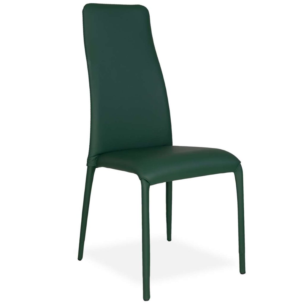 The Swing Dining Chair is the ideal sleek and minimalist piece for the contemporary dining room. Available in striking hunter green, this chair features full leather upholstery and attractive cross stitching on its backrest and seat that adds a bold touch. Swing's high back has a gentle curve that supports the spine, complemented by a waterfall edge on the seat to maximize your comfort.