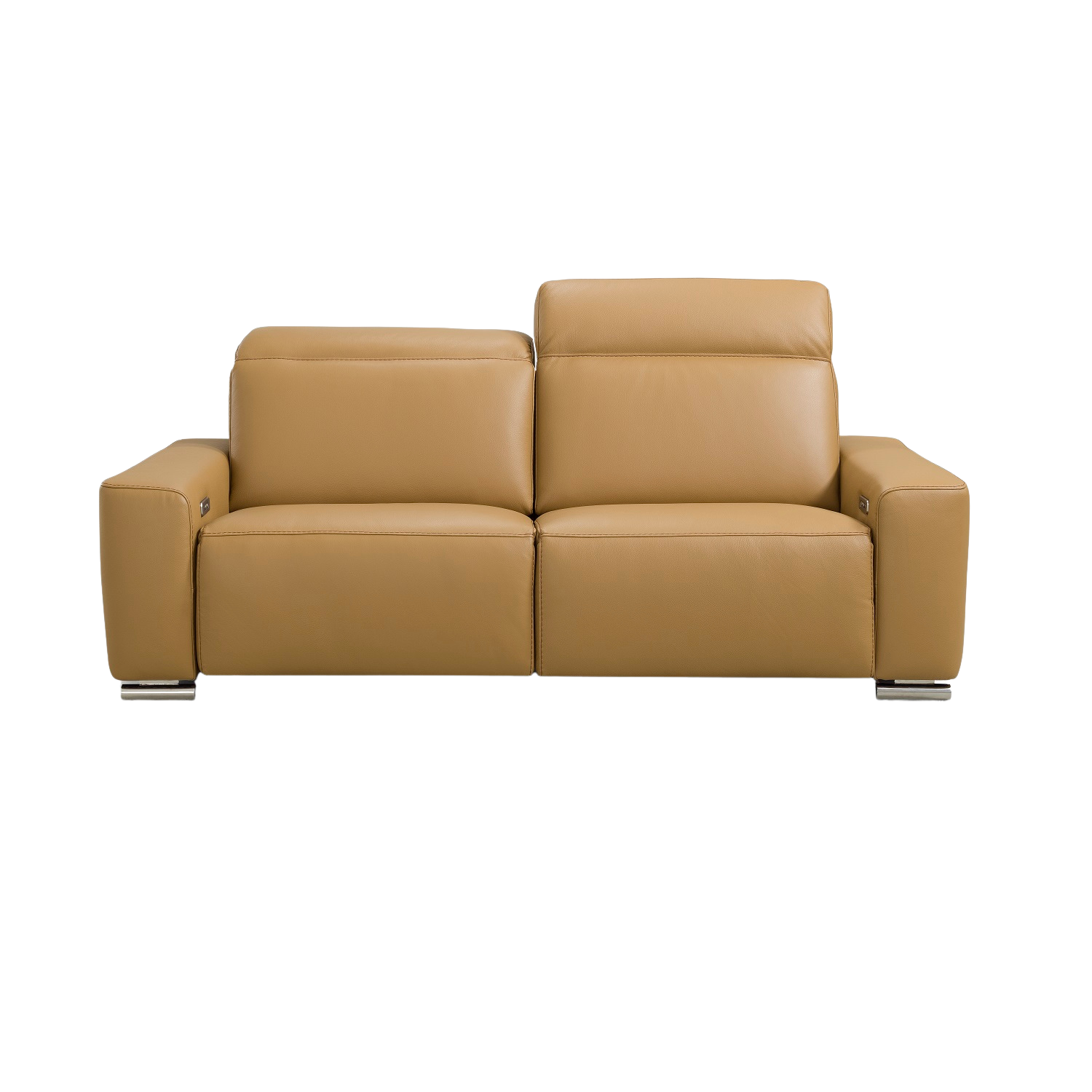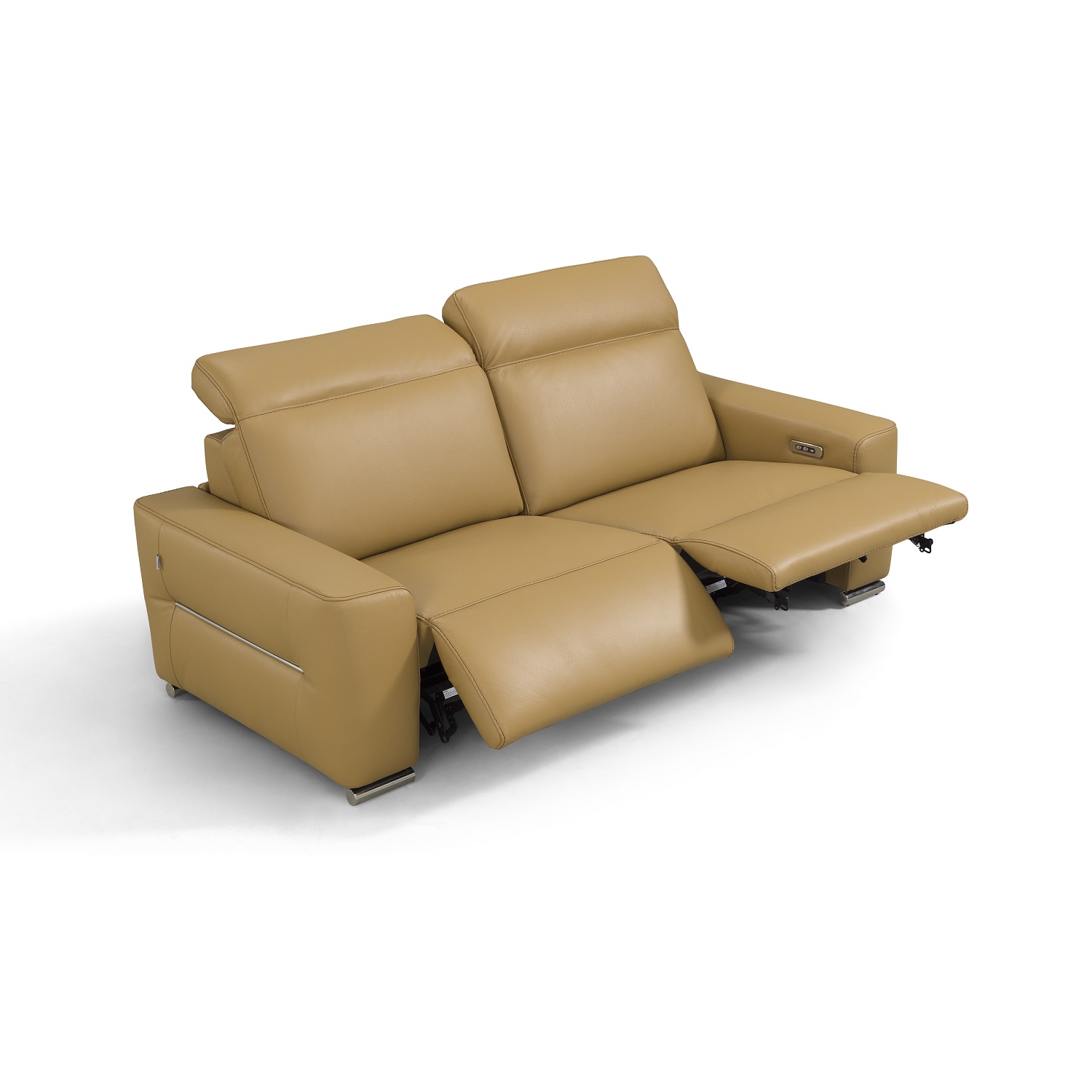 [0] => tammy 2 seat power motion sofa 84" long. dual power in both seat and headrest. leather 1069 light brown with contrast stitching stitch in lighter brown color. chrome feet contrasto