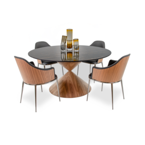[description] => Clessidra Round Dining Table 59", Frame Flamed Walnut / Black Nickel Ring / Cryst