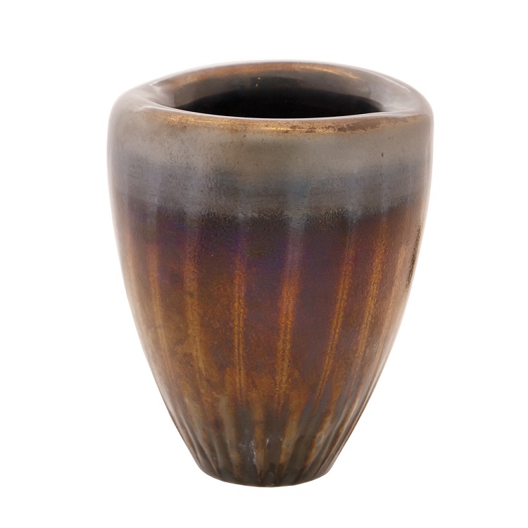 [0] => The Tear Drop vase is crafted from hand-formed art glass with deep amber hues. When the vase is molten glass, the mouth of the vase is folded inwards, creating a "double fold" effect that gives the top a artfully asymmetrical quality. The shape and color of the vases can vary slightly becuase they are hand-folded.
