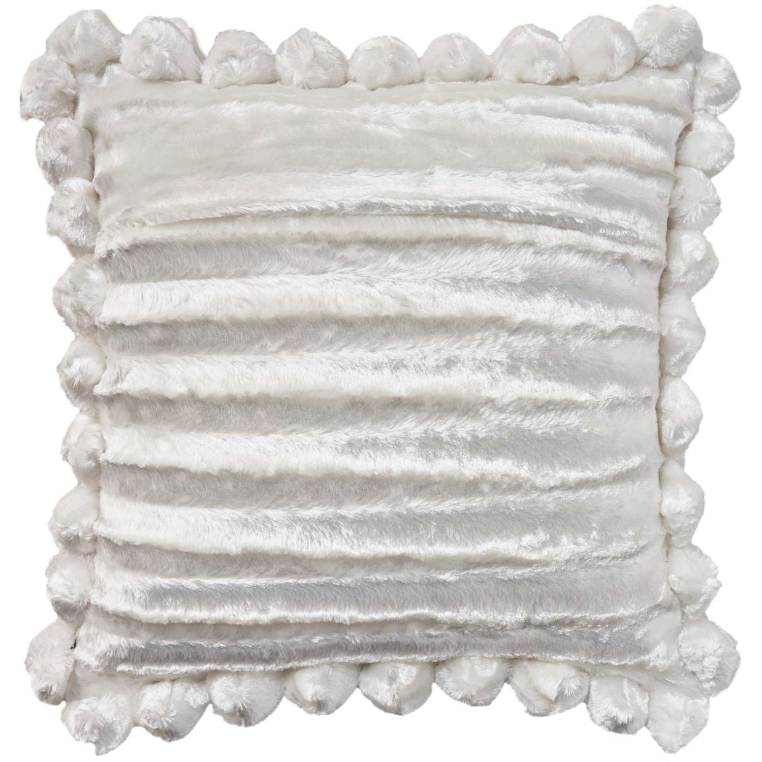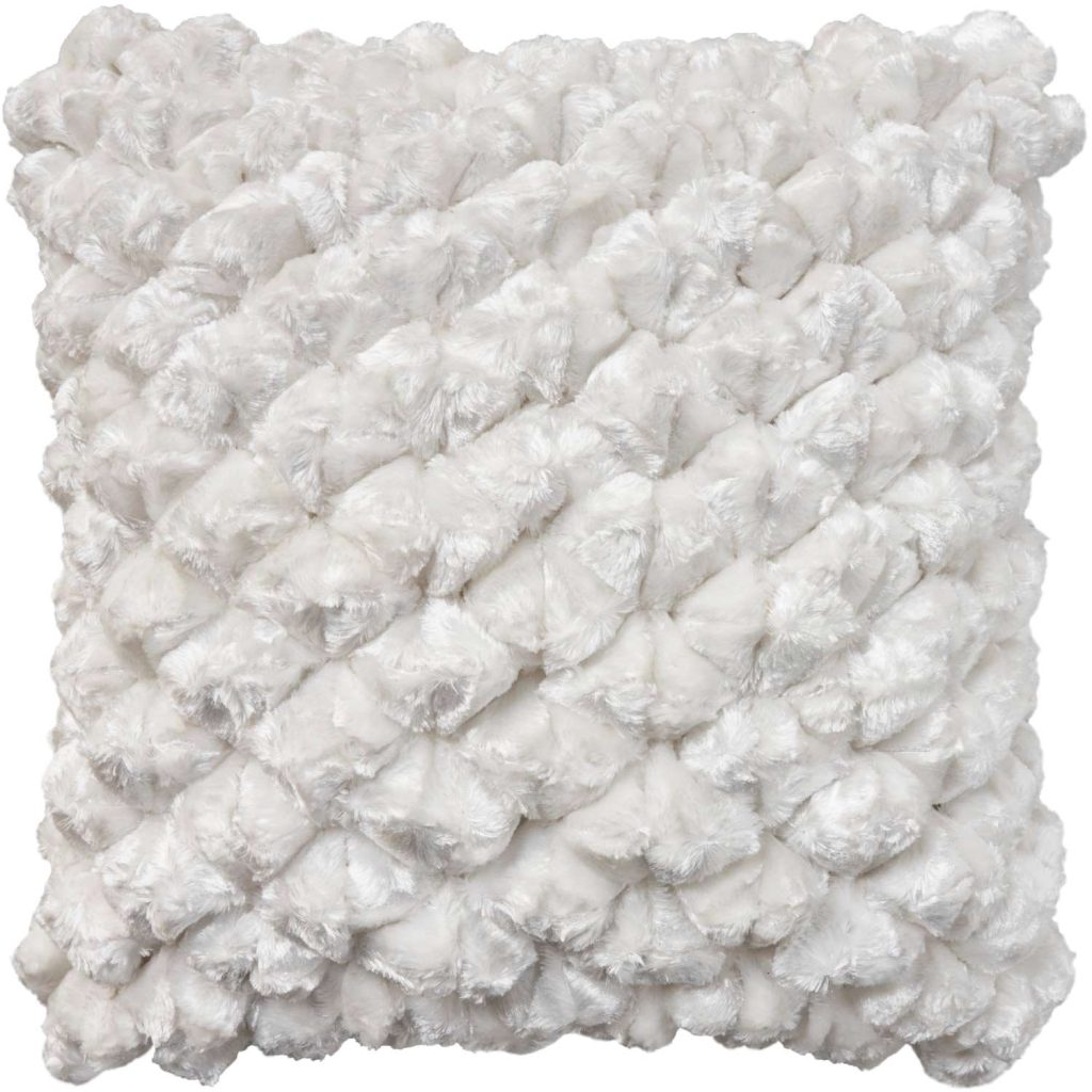[0] => The Textured Pom Pillow features a luxuriously tactile design, with a dimensional pattern of diamond-shaped pom-poms adorning its front surface, and textured stripes on its back. Available in white, this pillow has a polyester cover and filling, as well as a discreet zipper that allows the cover to be removed for spot cleaning. Perfect for placing on a sofa, armchair, or bed, the Textured Pom Pillow will add an extra touch of comfort and fun to your favorite seating.