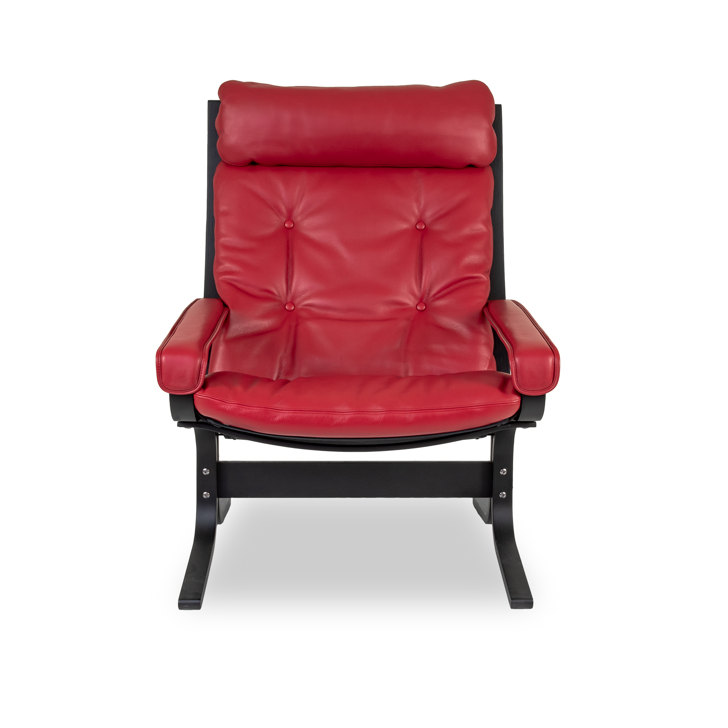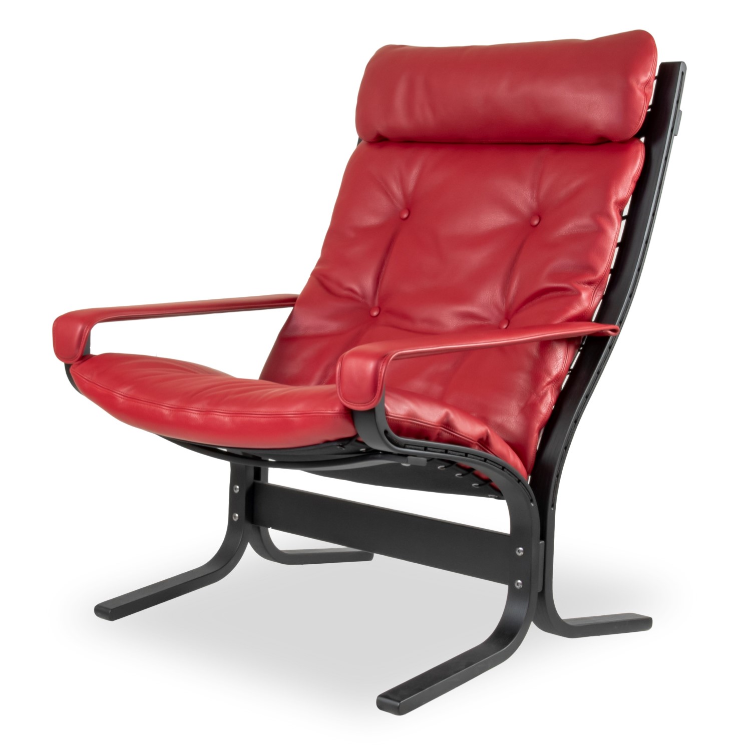 [0] => Designed in 1965 by Norwegian icon Ingmar Relling, the Siesta Highback Chair features blissfully soft cushioning and a lightweight frame. Upholstered in bold red aniline leather, Siesta's seat and back cushions have an inviting tufted design, while its neck pillow and armrests provide comfortable support for your head and arms. The canvas and cord structure underneath the cushioning lends additional softness, flexibility, and resilience to this iconic chair. Available with a contrasting black wood frame, the Siesta Highback Chair will bring mid-century modern style and unparalleled relaxation to any living space.