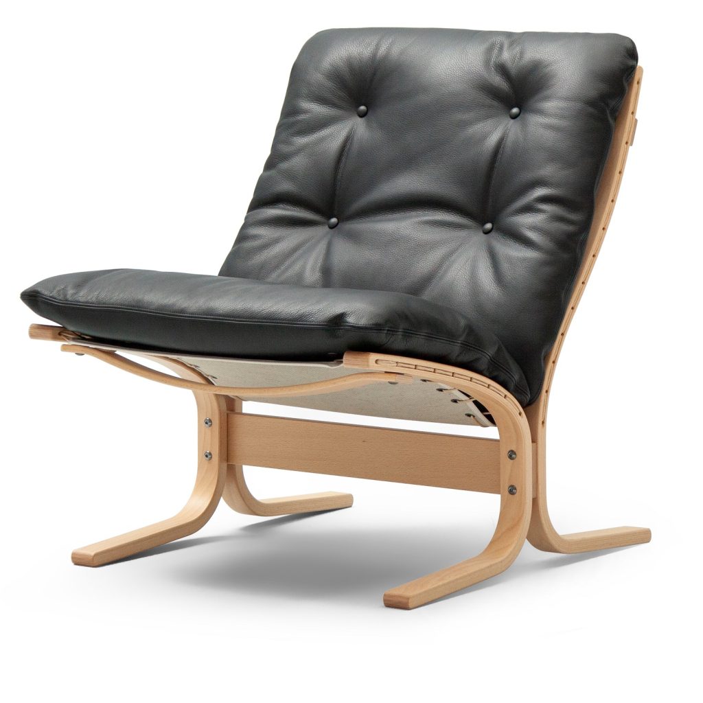 [0] => The Siesta classic is just that. Designed in 1965 by Ingmar Relling, a Norwegian icon, the chair features soft cushions and a light frame. The Siesta gives you a sense of tranquility and the highest level of relaxation and comfort imaginable. Shown in black Hemsen analine leather with a natural base.