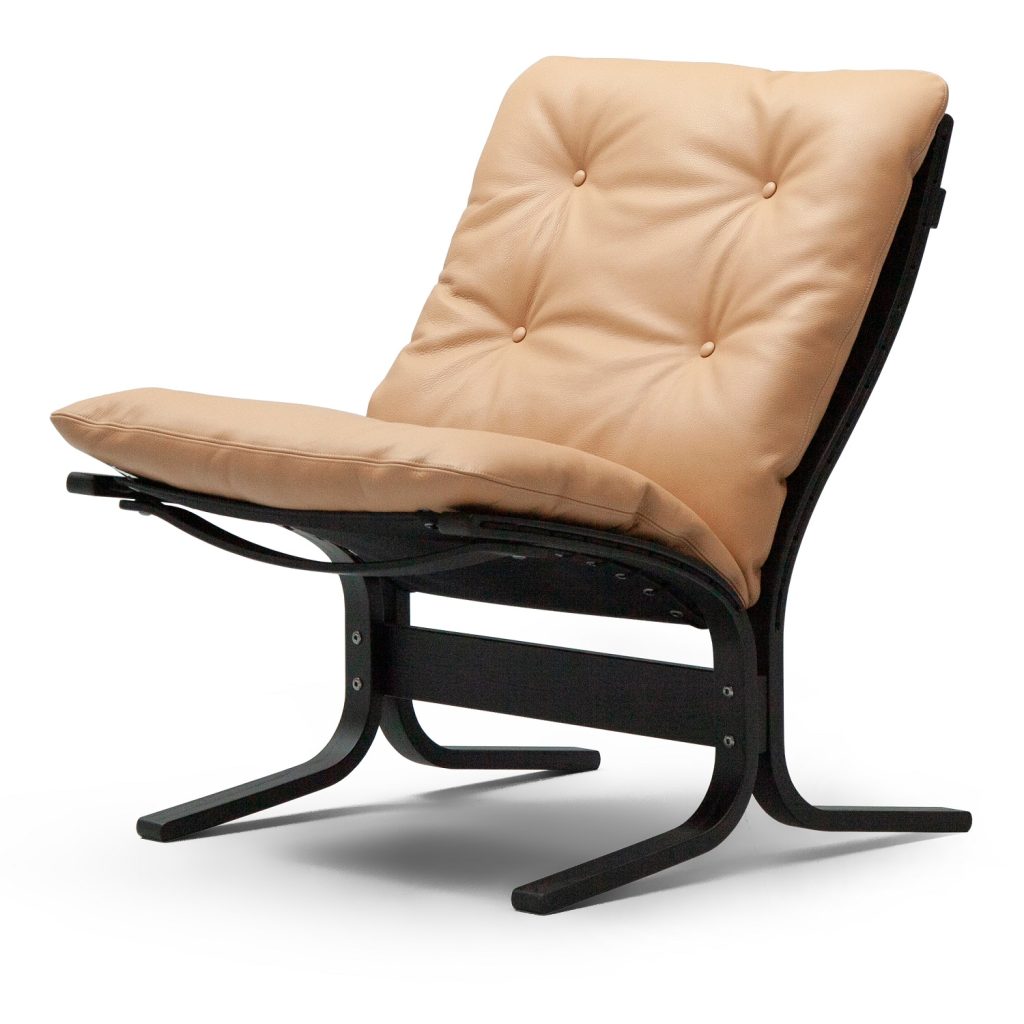 Designed in 1965 by Norwegian icon Ingmar Relling, the Siesta Lowback Chair features blissfully soft cushioning and a lightweight frame. Upholstered in tan aniline leather, Siesta's seat and back cushions have an inviting tufted design, enhanced by the canvas and cord structure underneath that lends additional softness, flexibility, and resilience to this iconic chair. Available with a contrasting black wood frame, the Siesta Lowback Chair will bring mid-century modern style and unparalleled relaxation to any living space.