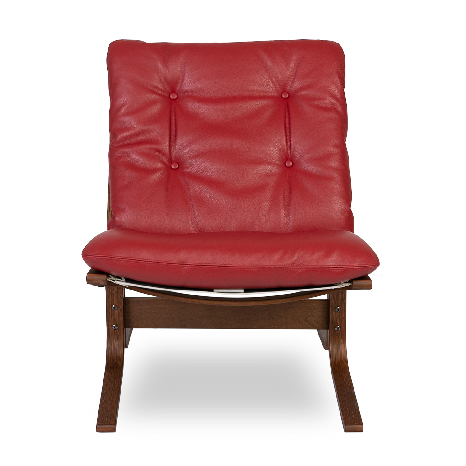 [0] => Designed in 1965 by Norwegian icon Ingmar Relling, the Siesta Lowback Chair features blissfully soft cushioning and a lightweight frame. Upholstered in bold red aniline leather, Siesta's seat and back cushions have an inviting tufted design, enhanced by the canvas and cord structure underneath that lends additional softness, flexibility, and resilience to this iconic chair. Available with a walnut oak frame, the Siesta Lowback Chair will bring mid-century modern style and unparalleled relaxation to any living space.