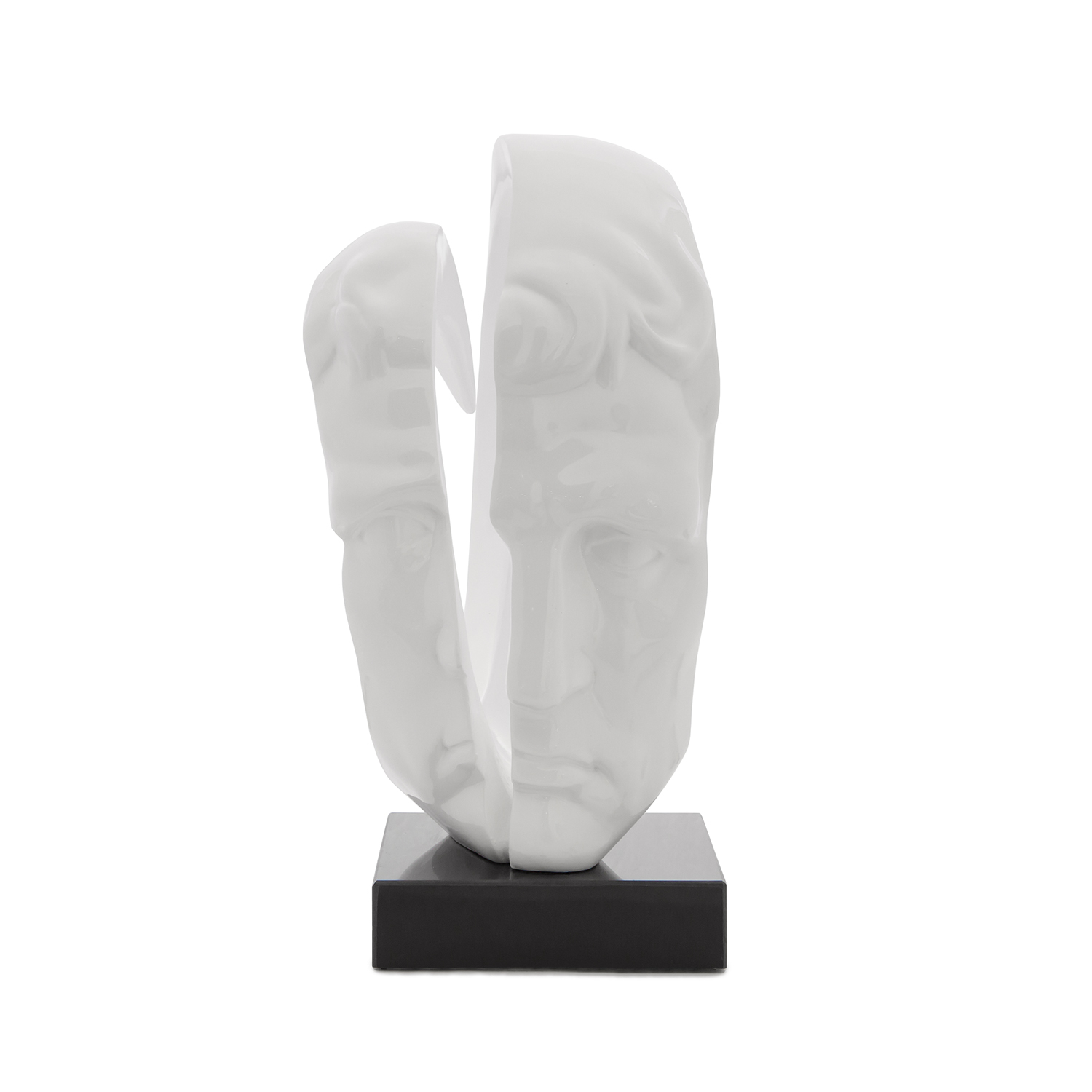 [0] => The Man Sculpture, available in white, features the abstract, somber, and pensive appearance of a man. The classical-looking facial sculpture is subverted in this piece, with a stark seperation traveling down the middle of the face. A perfect accessory for the modern work or home space.