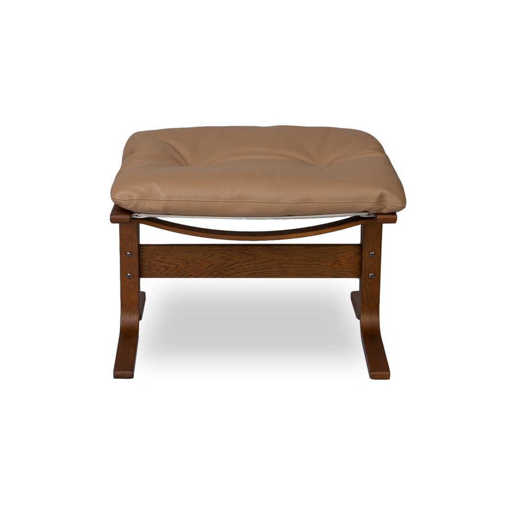 [0] => Designed by Norwegian icon Ingmar Relling, the Siesta Ottoman features blissfully soft cushioning and a lightweight frame. Upholstered in tan aniline leather, Siesta's cushion has an inviting tufted look, enhanced by the canvas and cord structure underneath that adds extra softness, flexibility, and resilience. Available with a walnut oak frame, the Siesta Ottoman pairs perfectly with the Siesta Chairs to bring you unparalleled relaxation.