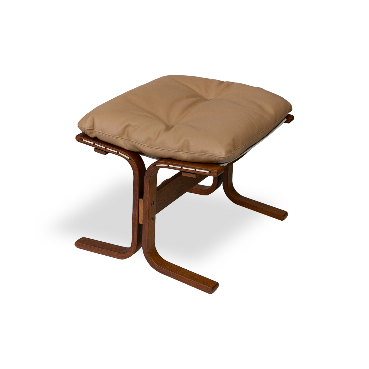 Designed by Norwegian icon Ingmar Relling, the Siesta Ottoman features blissfully soft cushioning and a lightweight frame. Upholstered in tan aniline leather, Siesta's cushion has an inviting tufted look, enhanced by the canvas and cord structure underneath that adds extra softness, flexibility, and resilience. Available with a walnut oak frame, the Siesta Ottoman pairs perfectly with the Siesta Chairs to bring you unparalleled relaxation.