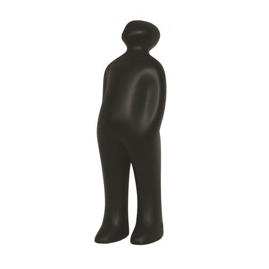 [0] => The Visitor Plus sculpture, designed by Guido Deleu of Belgium, represents a kind, friendly guest in your home or office who is content, observant, and comforting. Welcome him into your space and enjoy his pleasant company! The sculpture is ceramic and has a height of 15''. Pictured in black.