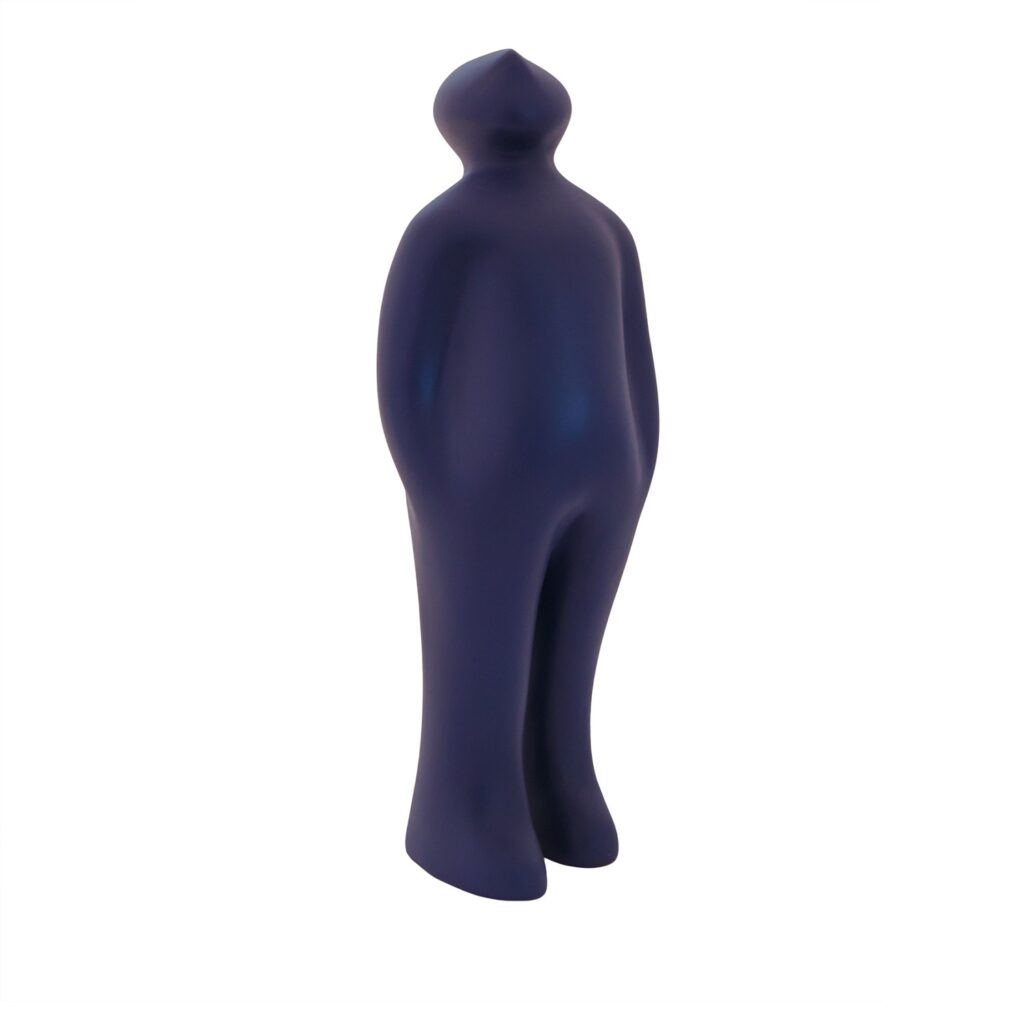 The Visitor Plus sculpture, designed by Guido Deleu of Belgium, represents a kind, friendly guest in your home or office who is content, observant, and comforting. Welcome him into your space and enjoy his pleasant company! The sculpture is ceramic. Pictured in indigo blue.