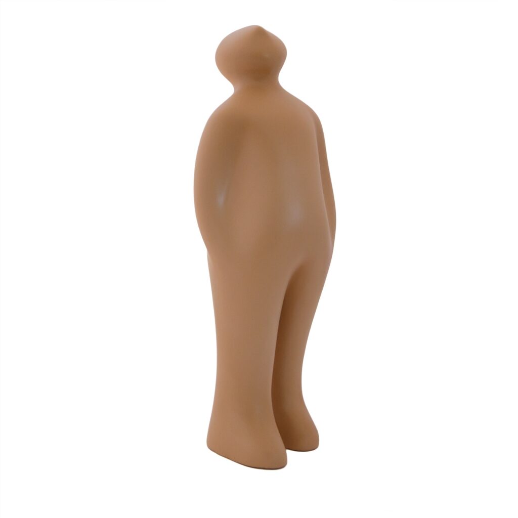 The Visitor Plus sculpture, designed by Guido Deleu of Belgium, represents a kind, friendly guest in your home or office who is content, observant, and comforting. Welcome him into your space and enjoy his pleasant company! The sculpture is ceramic. Pictured in tan.