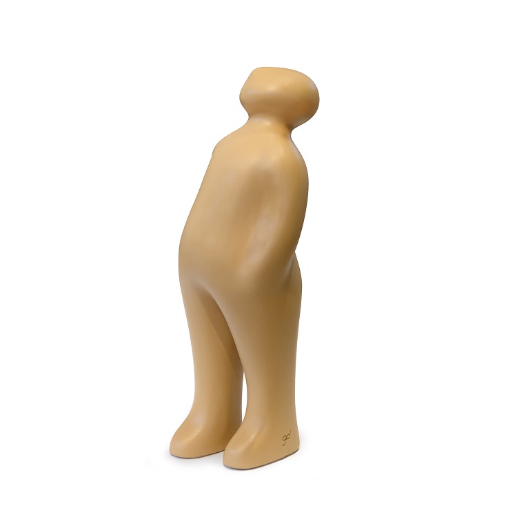 The Visitor Plus sculpture, designed by Guido Deleu of Belgium, represents a kind, friendly guest in your home or office who is content, observant, and comforting. Welcome him into your space and enjoy his pleasant company! The sculpture is ceramic and has a height of 15''. Pictured in clay.