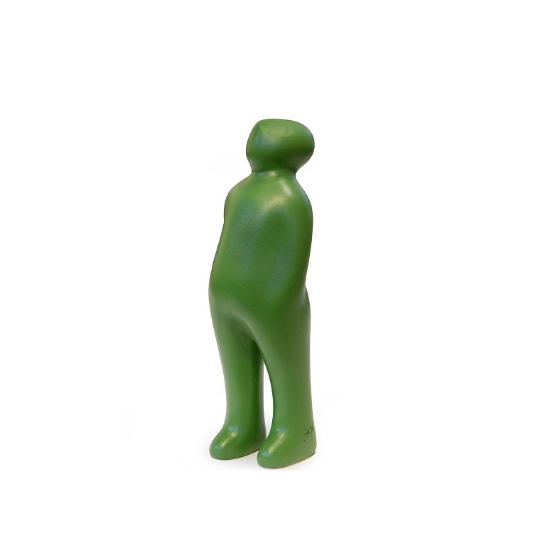 The Visitor sculpture, designed by Guido Deleu of Belgium, represents a kind, friendly guest in your home or office who is content, observant, and comforting. Welcome him into your space and enjoy his pleasant company! The sculpture is ceramic. Pictured in green alfalfa.
