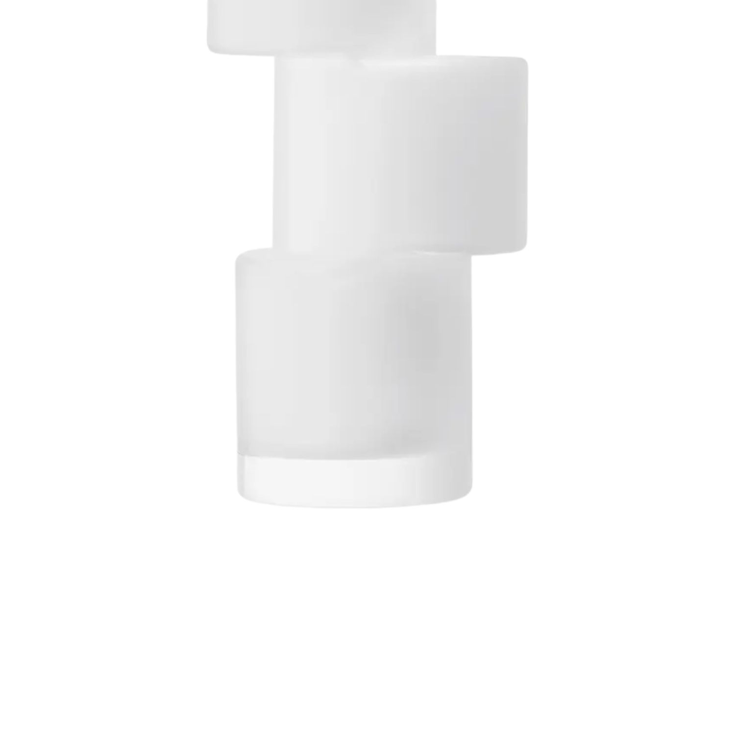 Inspired by post-modern architecture, the Tier Vase has a unique design resembling a tower of three asymmetrically stacked cylinders. This vase is made of mouth-blown glass in opaque chalk white and is ideal for a tasteful bouquet or simply to display alone as an art object.