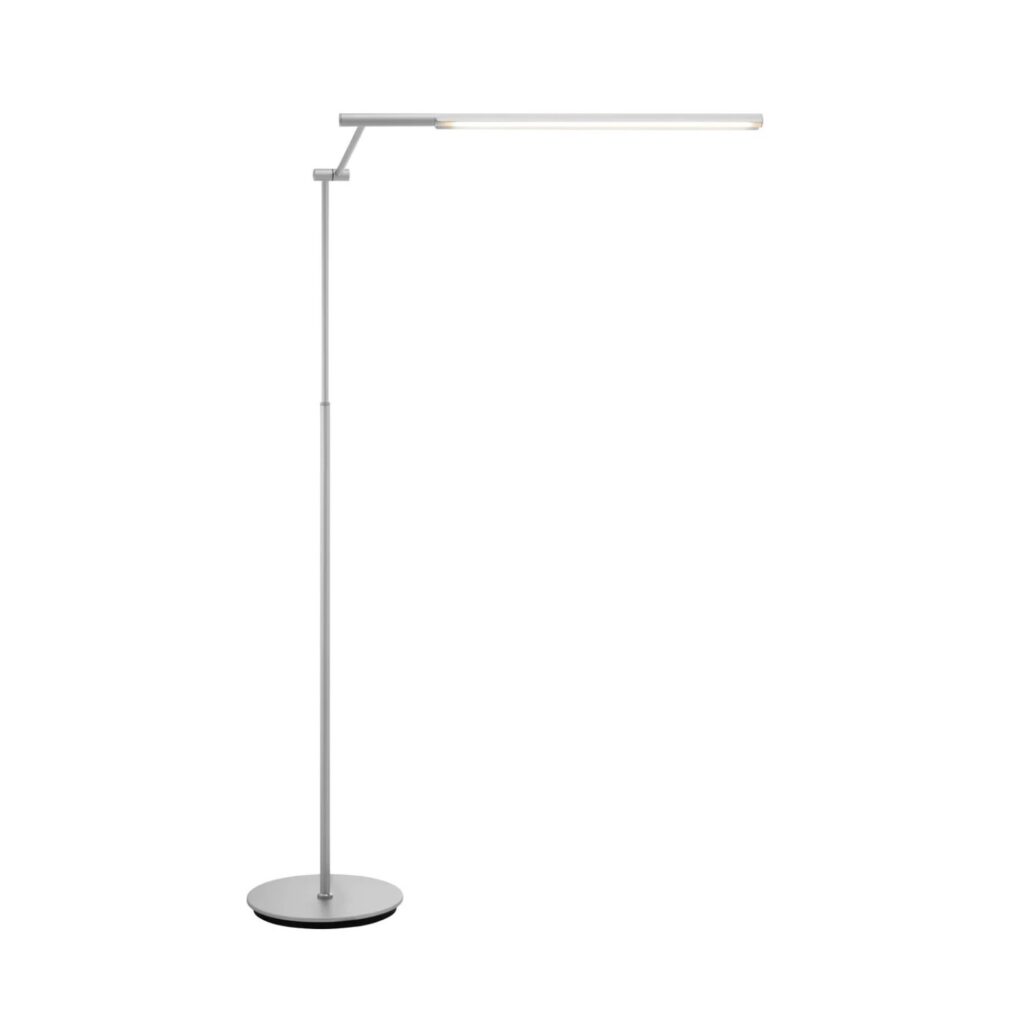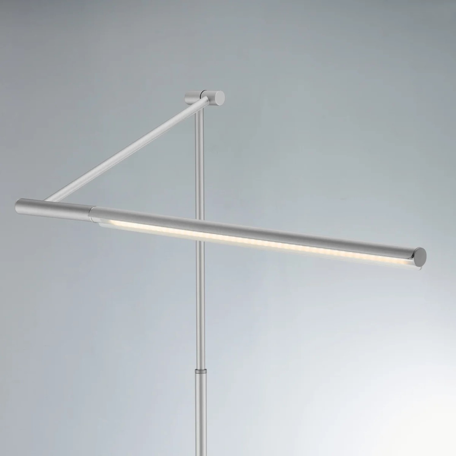 The Tilly Floor Lamp features a matte silver metal structure and integrated LED lighting. Sleek and space-saving, Tilly has a rotatable light bar, 4-way touch dimming switch, adjustable height, and a minimalist structure that assimilates easily into any kind of design environment.
