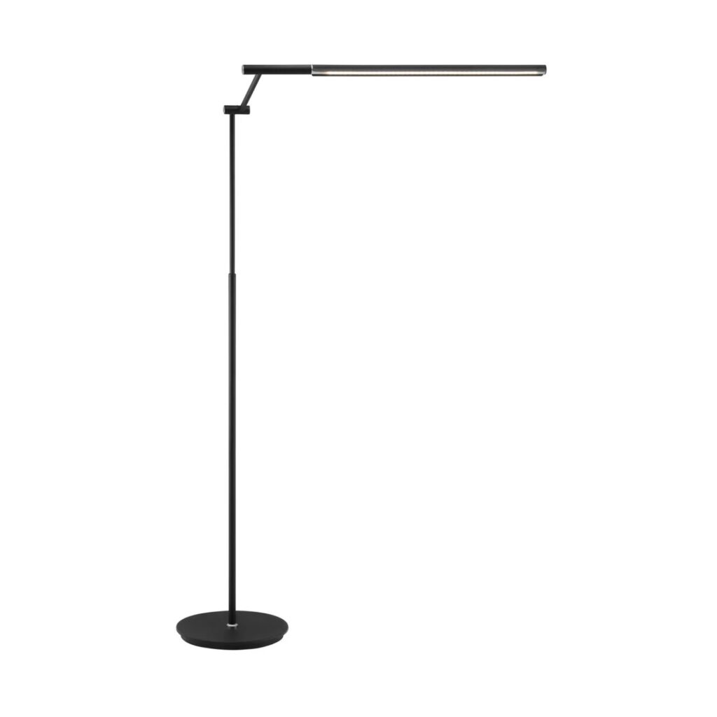 The Tilly Floor Lamp features a matte black metal structure and integrated LED lighting. Sleek and space-saving, Tilly has a rotatable light bar, 4-way touch dimming switch, adjustable height, and a minimalist structure that assimilates easily into any kind of design environment.