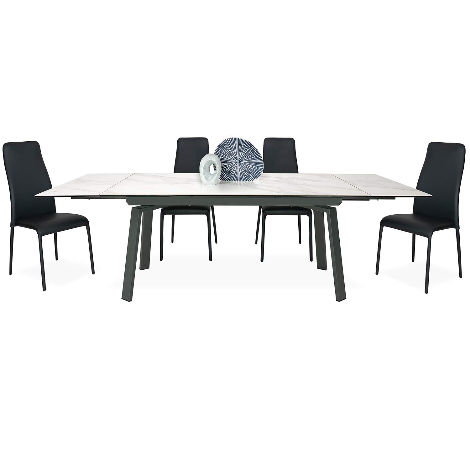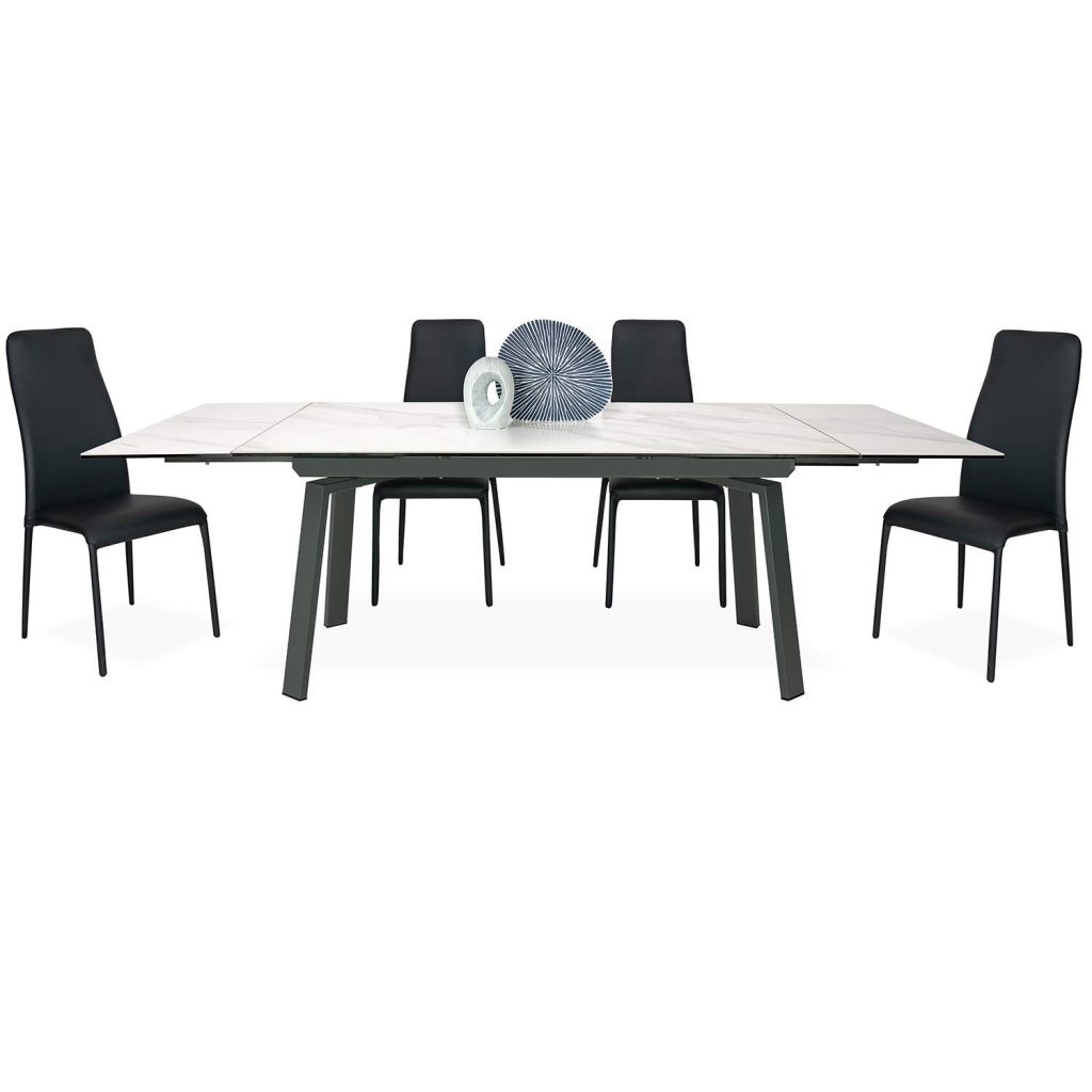 [0] => The Tito Extension Table blends the delicate look of ceramic marble with a bold angled base for a fully contemporary aesthetic. The anthracite grey finish of the steel legs complements the grey veining in the off-white Carrara ceramic marble tabletop. Equipped with two extension leaves that allow this table to accommodate up to ten diners, Tito is ready to receive company.