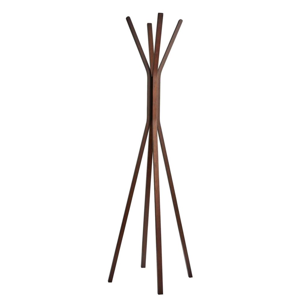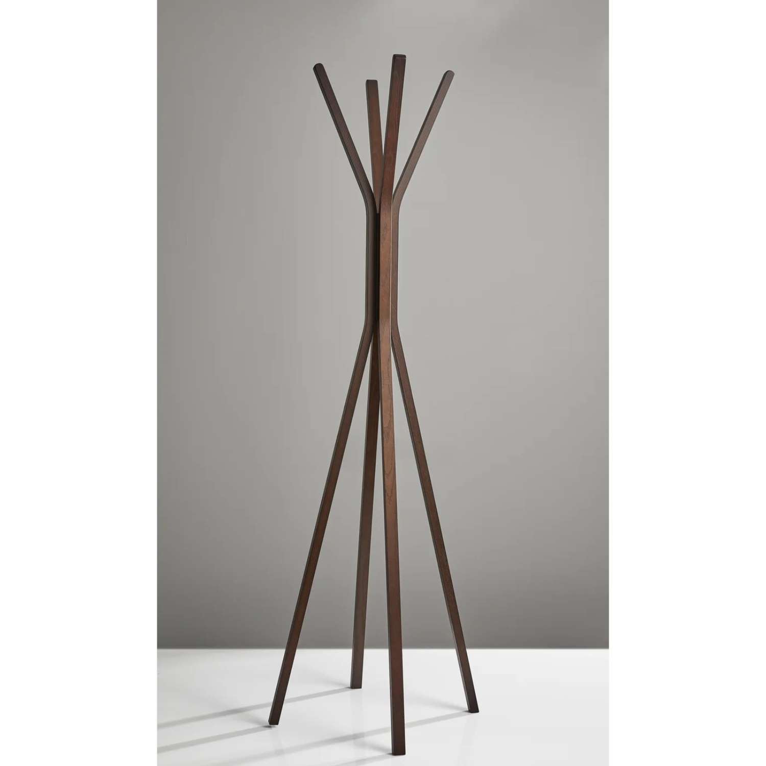 [0] => The Toby Coat Rack has an organic, mid-century modern design, featuring four coat hooks for ample space to hang hats, scarves, coats, and more. Crafted of layered plywood with a walnut oak wood veneer on its outer layers, Toby's branched structure is evocative of a tree's natural beauty while its tripod-like base forms a sturdy foundation.