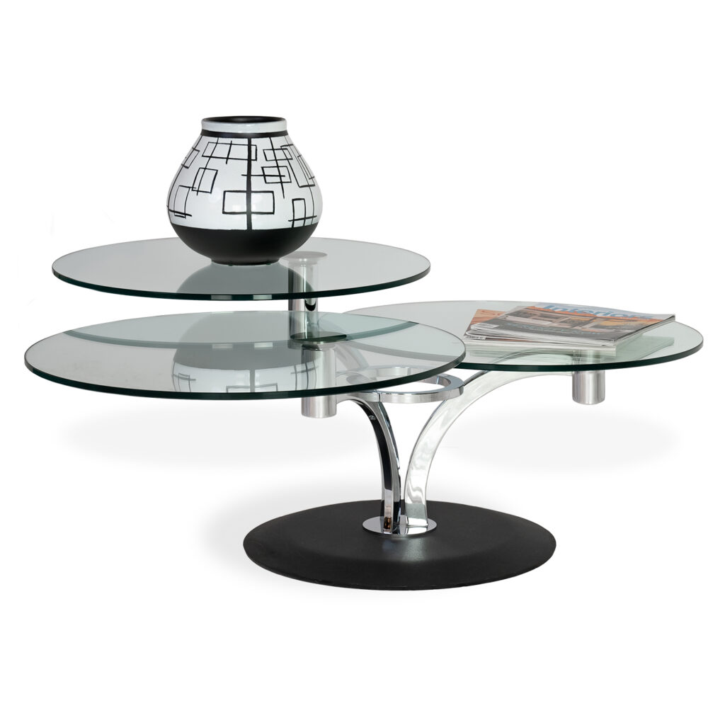 The Trillo cocktail table, designed by Mario Morbidelli for Naos of Italy, stands out for its bold contemporary design and high degree of functionality. The Trillo is equipped with Naos' unique expansion mechanism that enables it to expand from one to three separate tabletops.