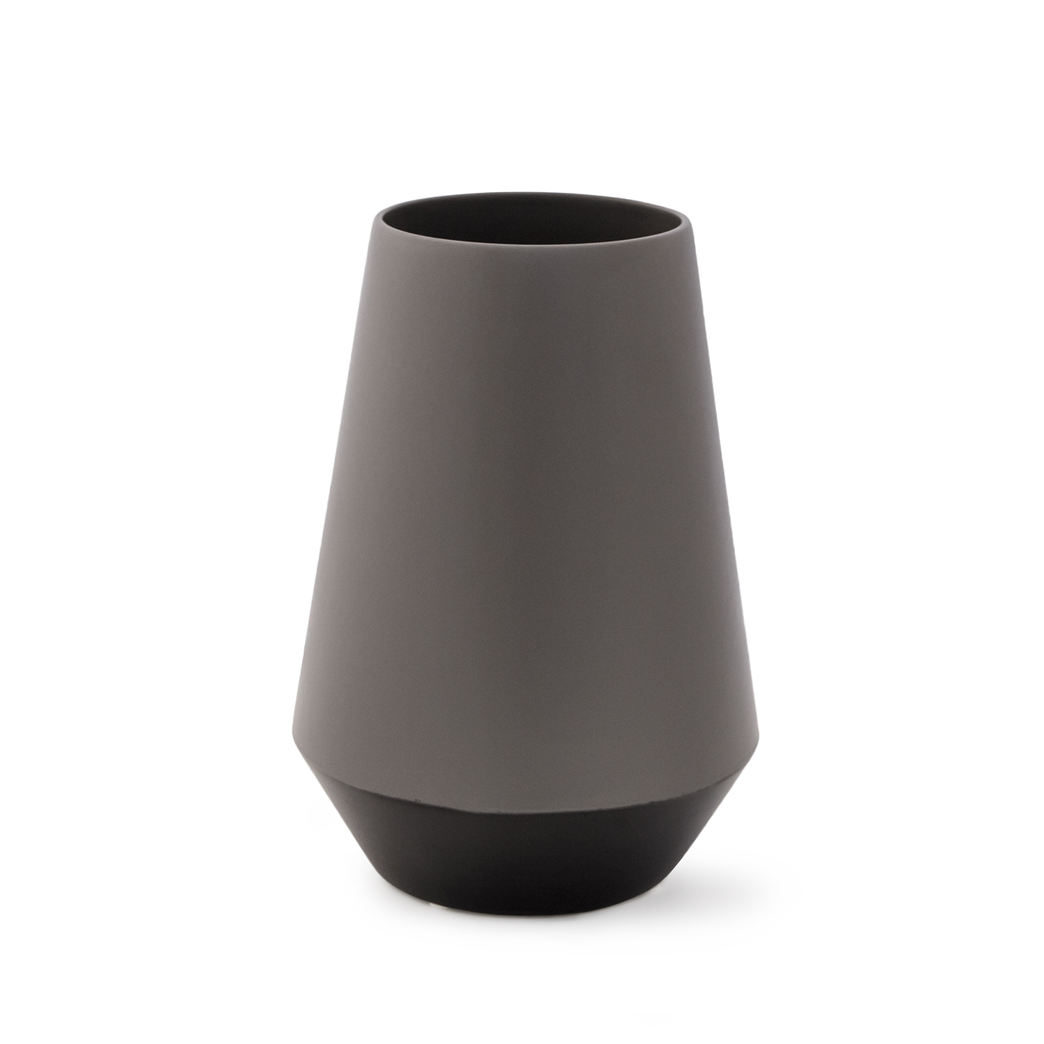 The Trio Large Vase, made in Italy, is the perfect accent for decorating an end or dining table or for simply holding flowers. Available in a combination of matte black and dark taupe ceramic, this vase features a smooth, angled form that is simple and modern.
