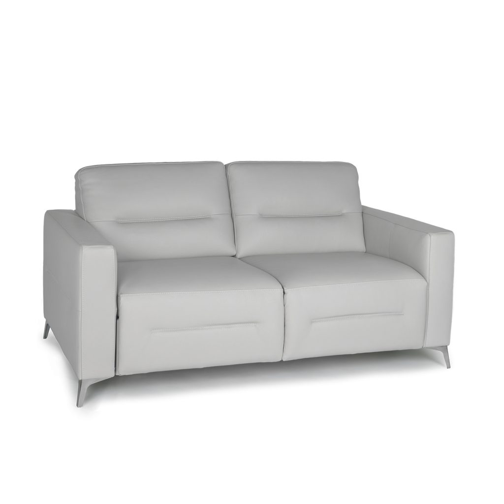 [0] => The Tucson Sleeper Full Sofa has a clean, structured shape that will boost the utility of your space and accomodate additional guests with ease! The light grey leather upholstery is accented by matching stitching across each cushion in a sleek, linear pattern. The wide seats and minimalist armrests heighten your comfort in both sofa and sleeper positions, while the angled metal legs subtly show beneath.