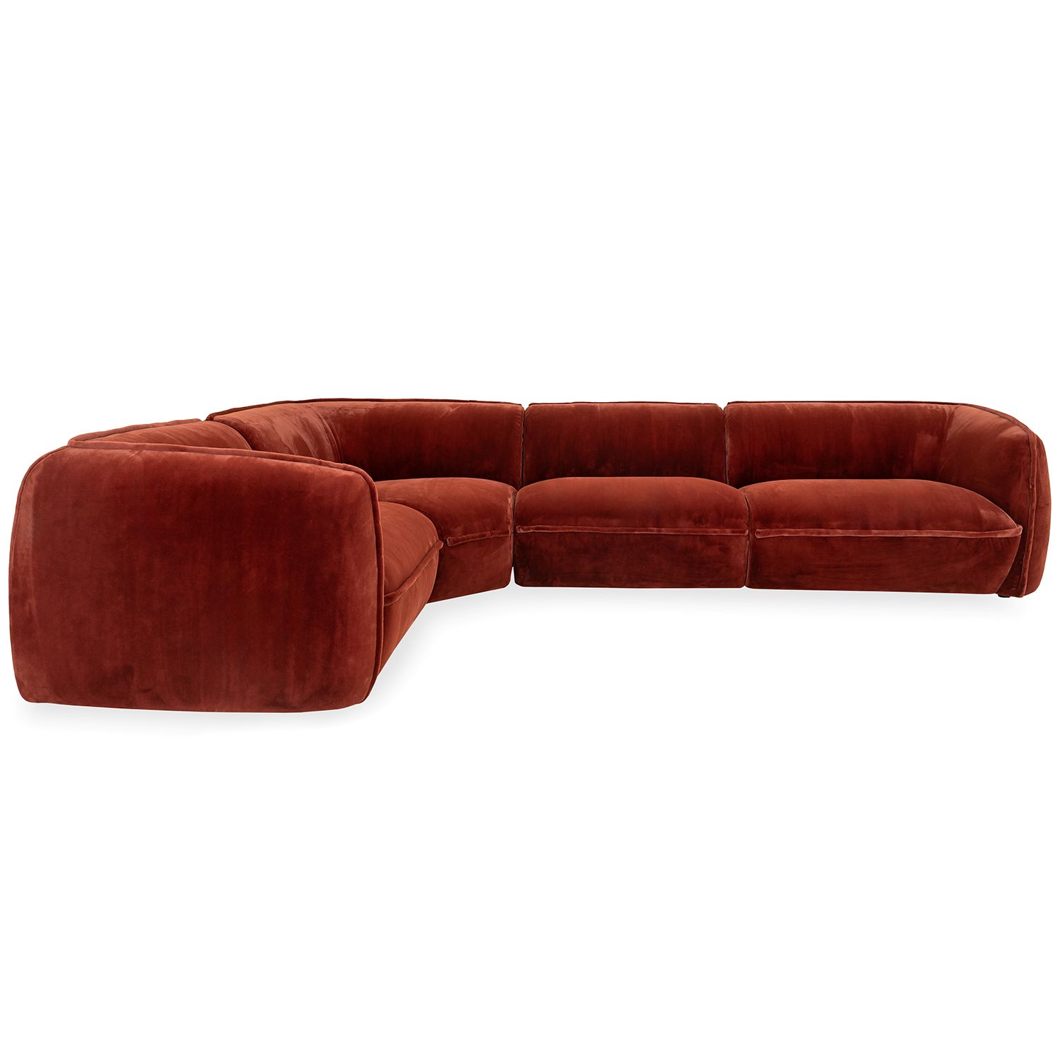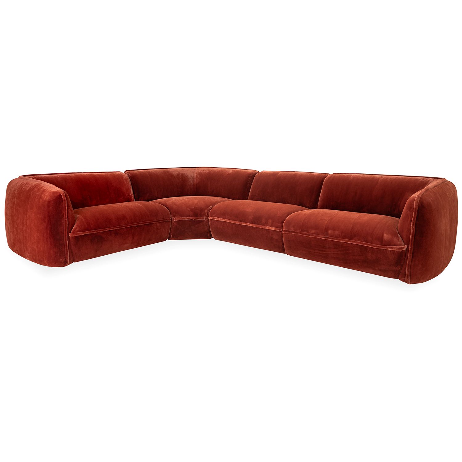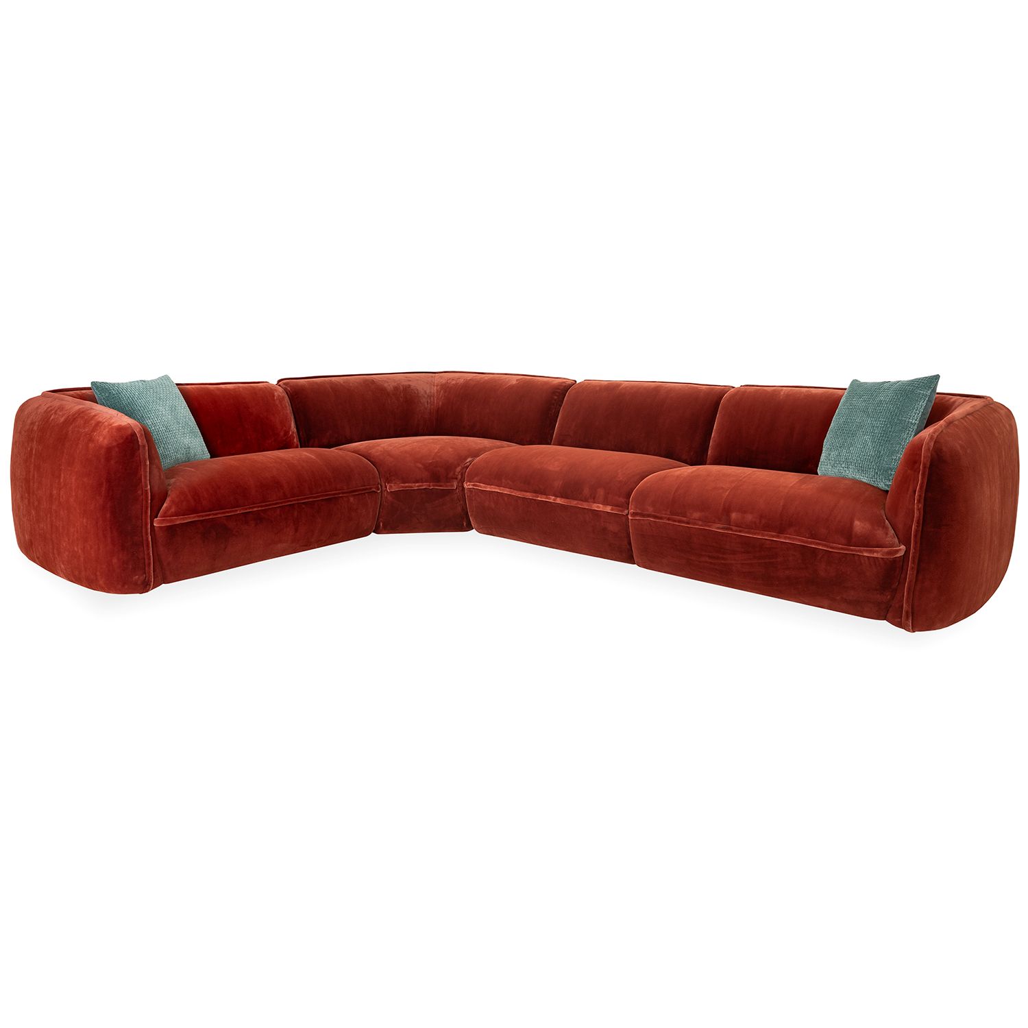 Treat yourself to tactile indulgence with Incanto Italia's Turin Sectional. Turin is upholstered in rust red Milano fabric upholstery with an ultra-soft, faux fur-like texture that simply must be felt to be believed. Designed for maximum comfort, this sectional has a plush, rounded silhouette with oversized, piped seams and four wide seats with buoyant inner-spring cushioning. Bring home Turin and transform your living space into a hub for relaxation and fun.