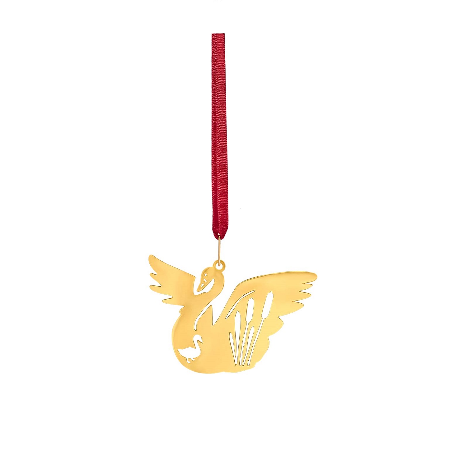 Bring Danish charm to your home for the holidays with the Ugly Duckling Pendant. Made of 18-karat gold-plated brass with a polished shine and delicate cut-out sections, this ornament references the fairytale "The Ugly Duckling" by Hans Christian Andersen. This pendant comes with a red ribbon that makes it ready to hang on your tree.