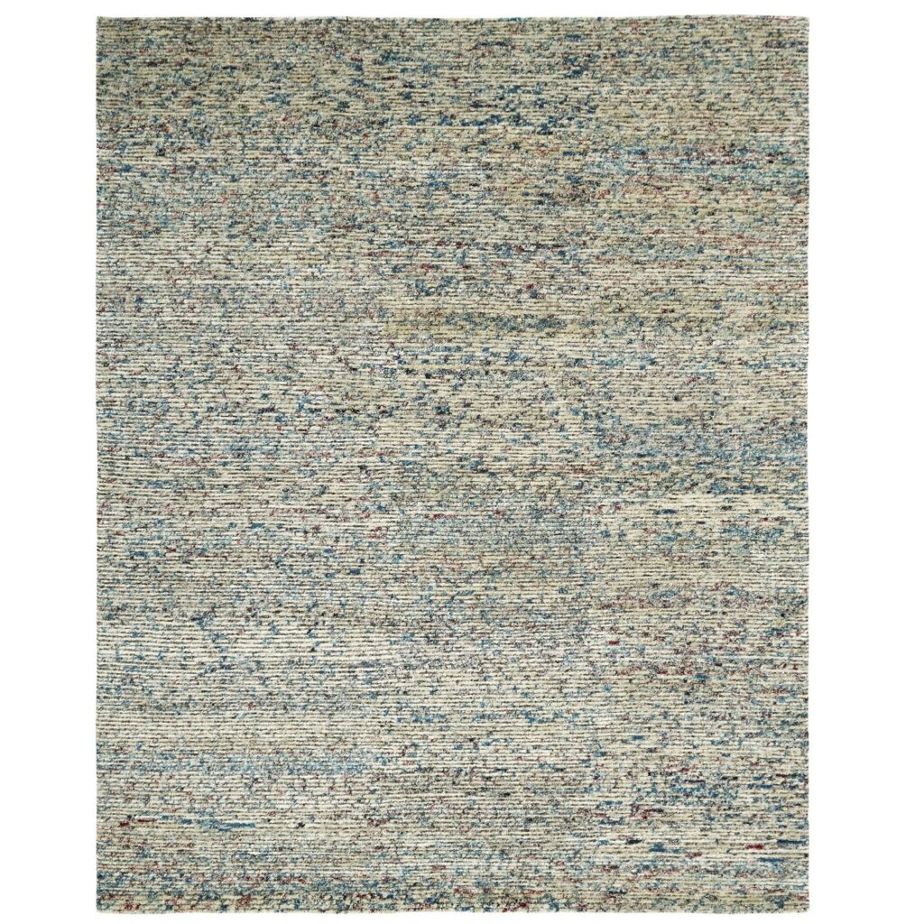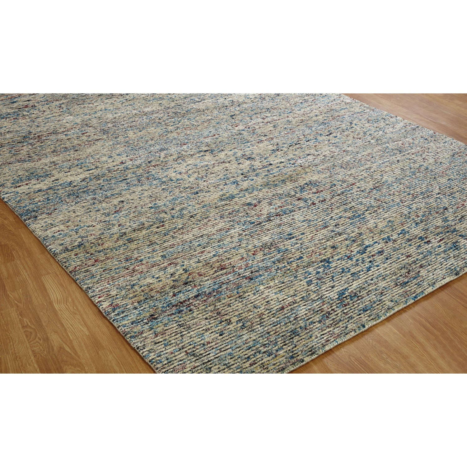 The Vanda rug is contemporary with variegated tones of grey, brown and soft green. Vanda is hand-knotted in a pile-and-loop weave with hand-spun wool and Silkette, silk-like viscose yarns.