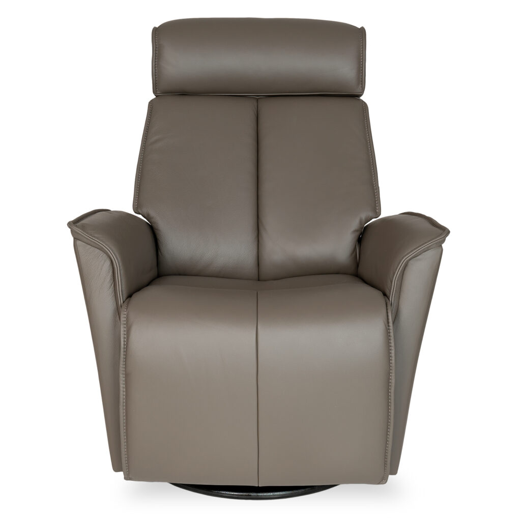 The Venice Large Power Recliner brings functional, stylish Norwegian design and superior comfort to your home. Upholstered in "safari" taupe grey top grain leather, Venice features comfortable, supportive back and seat cushions with a contemporary, tailored fit and gently sloping armrests that bolster the body. Along with swivel and rocker functions, Venice is equipped with a dual-motor power motion mechanism that allows the chair to recline to the ideal angle at the touch of a button. Easily adjust the headrest to find the right position for your head and neck. Enjoy relaxation and peace with Venice while reading, watching a film, or resting alone or with those you love. "Venice" will become synonymous with "comfort."