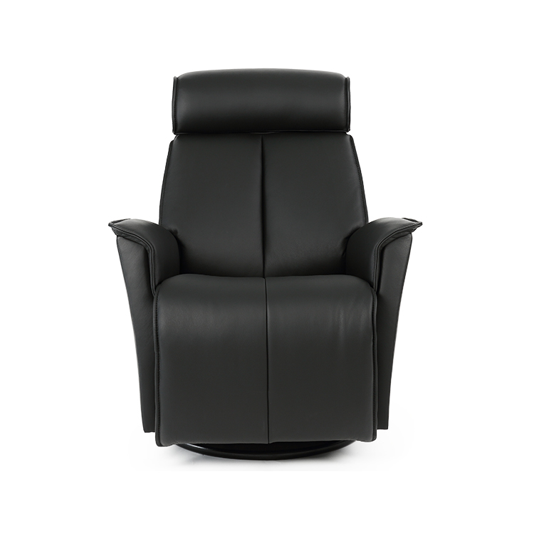 The Venice recliner brings functional, stylish Norwegian design and superior comfort to your home. Upholstered in soft top grain leather, Venice features comfortable, supportive back and seat cushions with a contemporary, tailored fit and gently sloping armrests that bolster the body. Along with swivel and rocker functions, Venice is equipped with a manual reclining mechanism that allows the chair to recline to the ideal angle at the discrete pull of a lever. Easily adjust the headrest to find the right position for your head and neck.