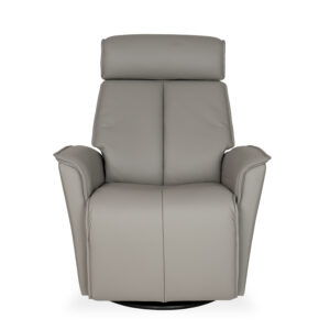 The Venice Small Power Recliner brings functional, stylish Norwegian design and superior comfort to your home. Upholstered in "safari" taupe grey top grain leather, Venice features comfortable, supportive back and seat cushions with a contemporary, tailored fit and gently sloping armrests that bolster the body. Along with swivel and rocker functions, Venice is equipped with a dual-motor power motion mechanism that allows the chair to recline to the ideal angle at the touch of a button. Easily adjust the headrest to find the right position for your head and neck. Enjoy relaxation and peace with Venice while reading, watching a film, or resting alone or with those you love. "Venice" will become synonymous with "comfort."