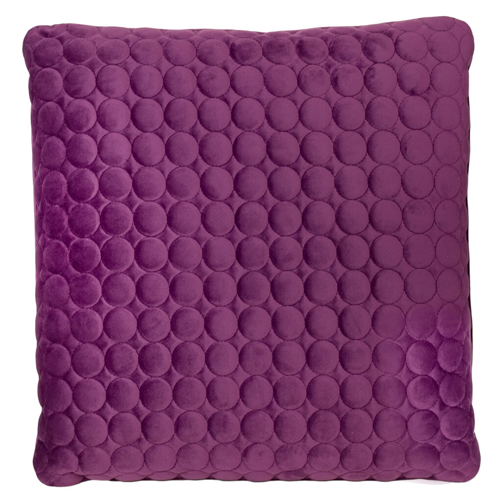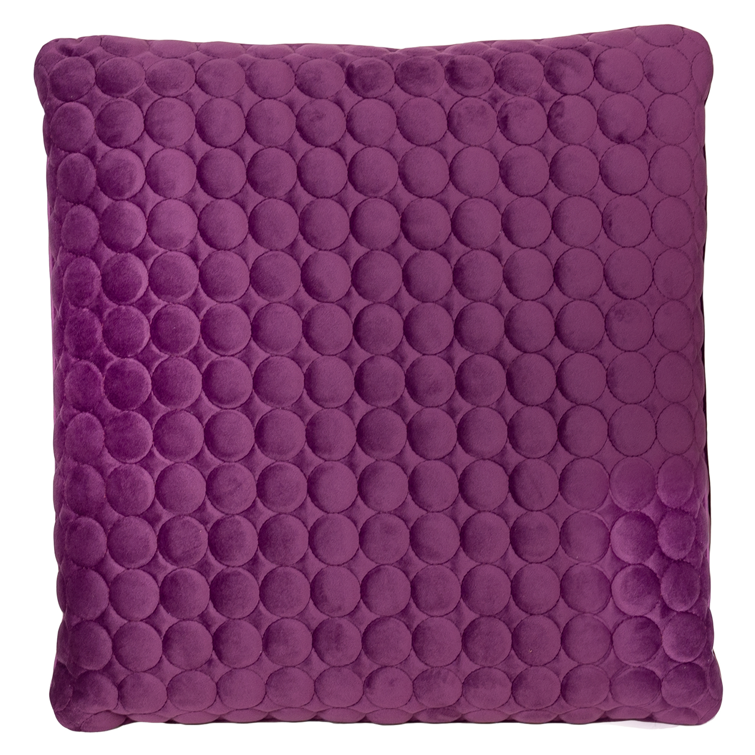 Made in Italy, the Viki Pillow features a vivacious shade of purple and a playful pattern of stitched circles that lends a quilted feel to the front of the pillow. Viki's velvet fabric is exquisitely soft and smooth to the touch, while a back zipper allows for easy removal of the cover.