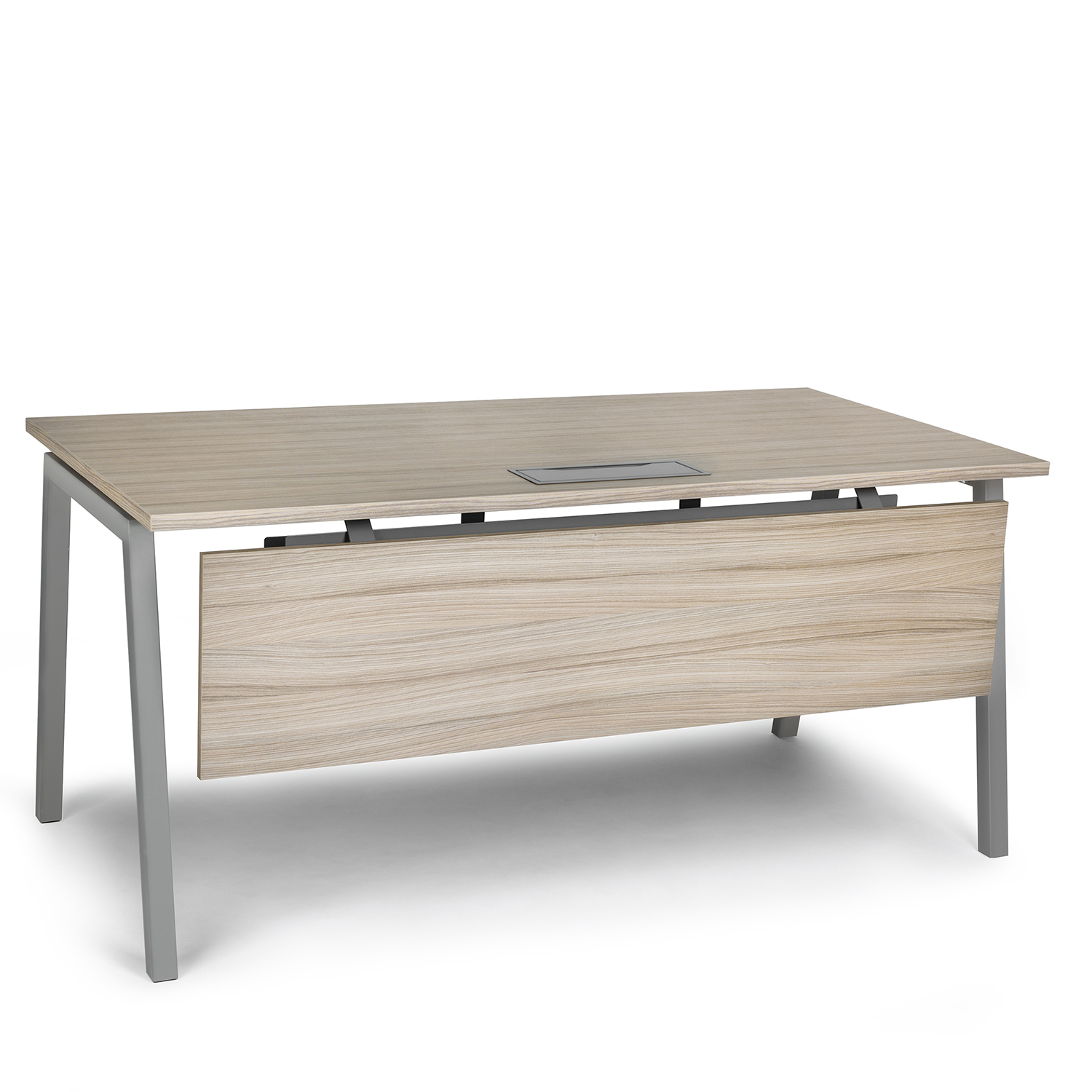 [0] => vili desk 63"x31.5"x29"h with grey ncss6500 metal base shorewood grey melamine h3090-st22 table and modesty panel dnh160 w/grey painted rectangular metal grommet znz010 and cable tray dnz020 knocked down
