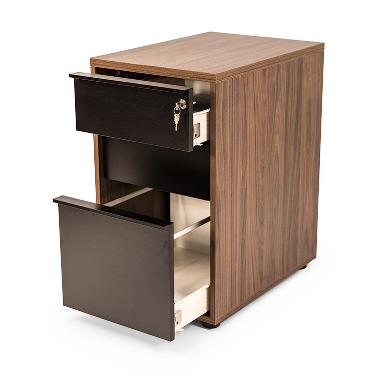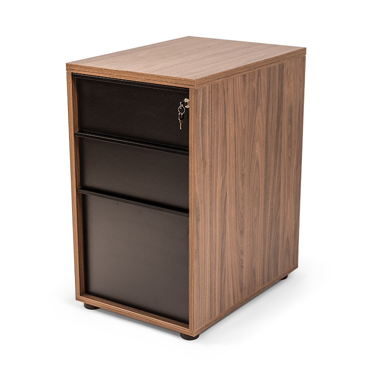 [0] => The Vili high pedestal, available in dark walnut melamine with black melamine drawer fronts and metal pulls, complements any of the desks from the Vili collection. The pedestal has three drawers, including US standard-file size, and a high design to accommodate more storage. The lock and key ensure that your files and valuables stay secure.