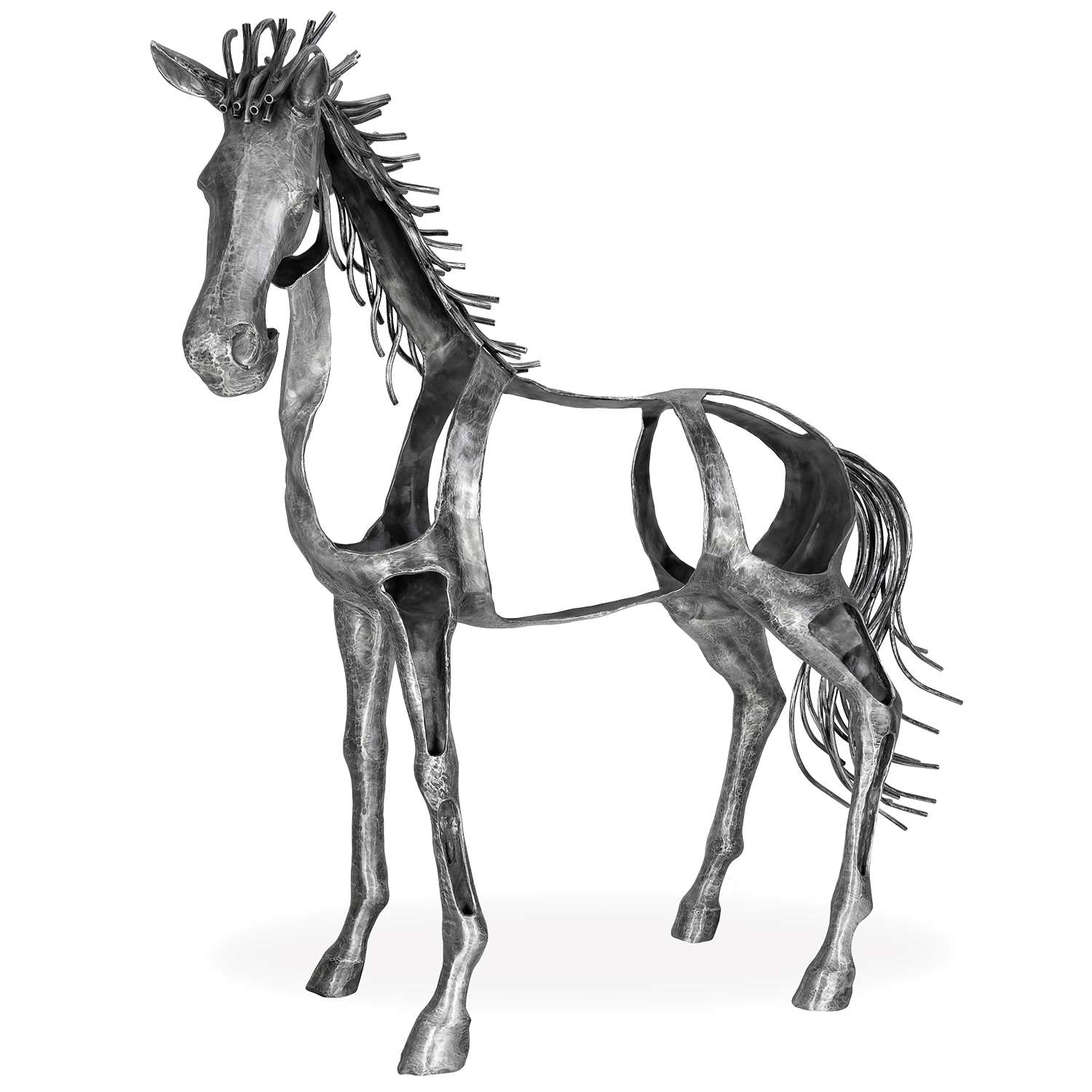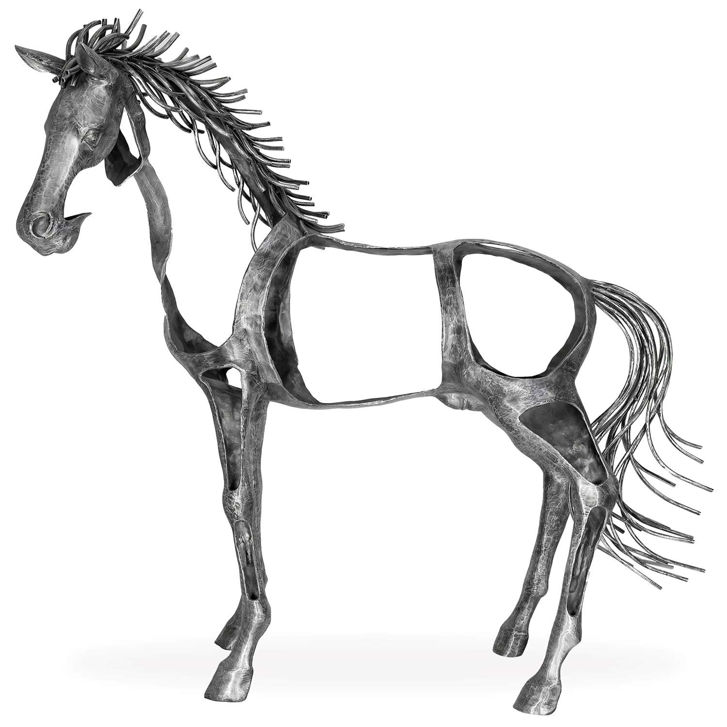 The Walking Horse Sculpture is a breathtaking work of art wrought from aluminum and depicting the realistic, life-size form of a horse with a unique twist. Cutout sections on the horse's body reveal a hollow structure, creating a sense of lightness and ethereality. Suitable for indoor or outdoor use, the Walking Horse is perfect for horse enthusiasts and lovers of modern sculpture.