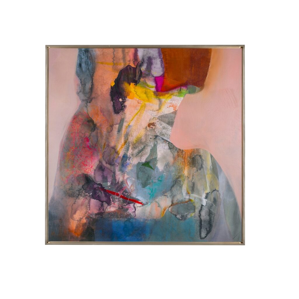 The Walla II Wall Art features a blend of watercolors against a smooth salmon background. Bright yellow and red accents add a pop of color to the subtle pastel shading. The shapes created in this piece can inspire imagination.