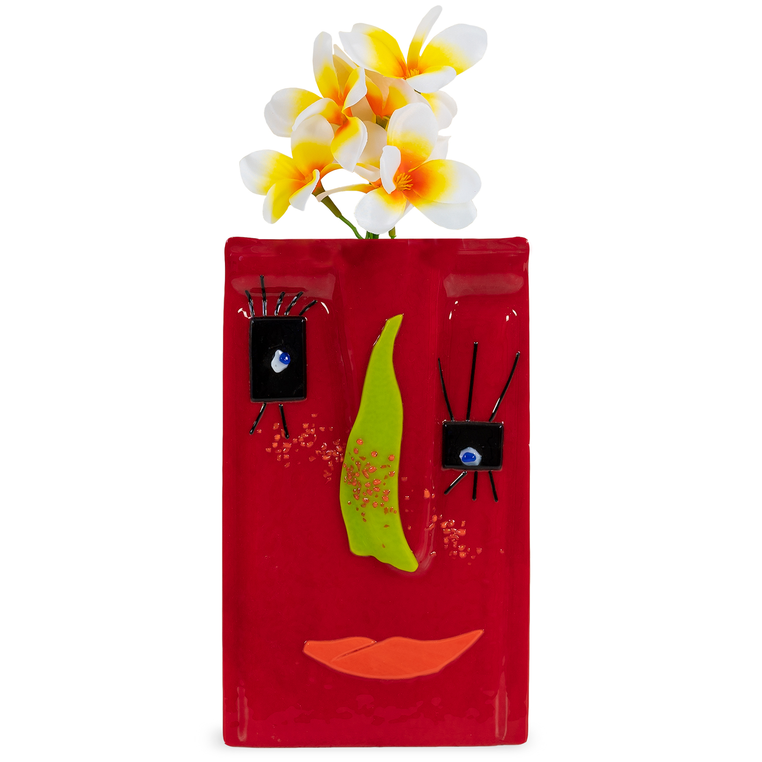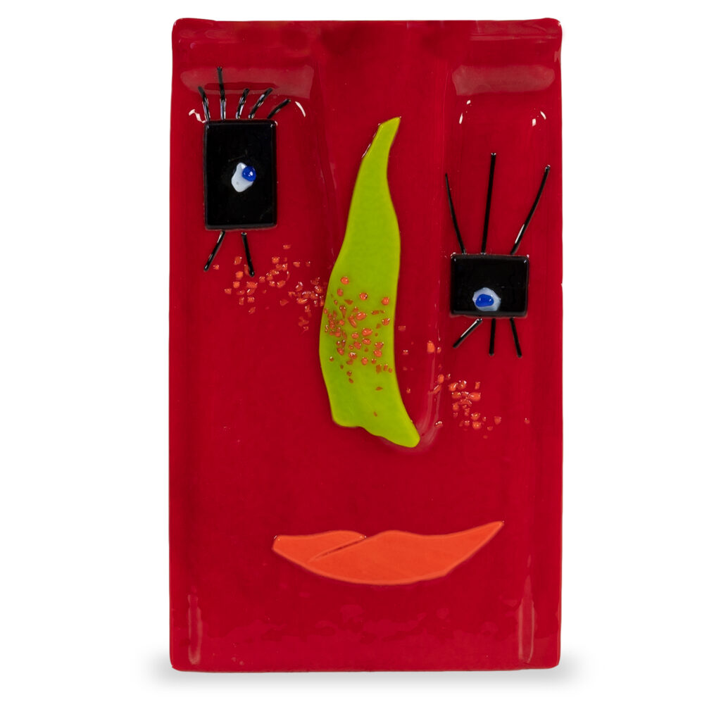 Whimsical and full of personality, the Wallflower Glass Face Vase functions both as a wall sculpture and a hanging vase. Made by Arizona glass artisans Carole Perry and Don Carroll, Wallflower features a playful asymmetrical expression with a sprinkling of freckles, a hollow "nose" perfect for a pint-sized bouquet, and a rich shade of red that will jazz up any wall.