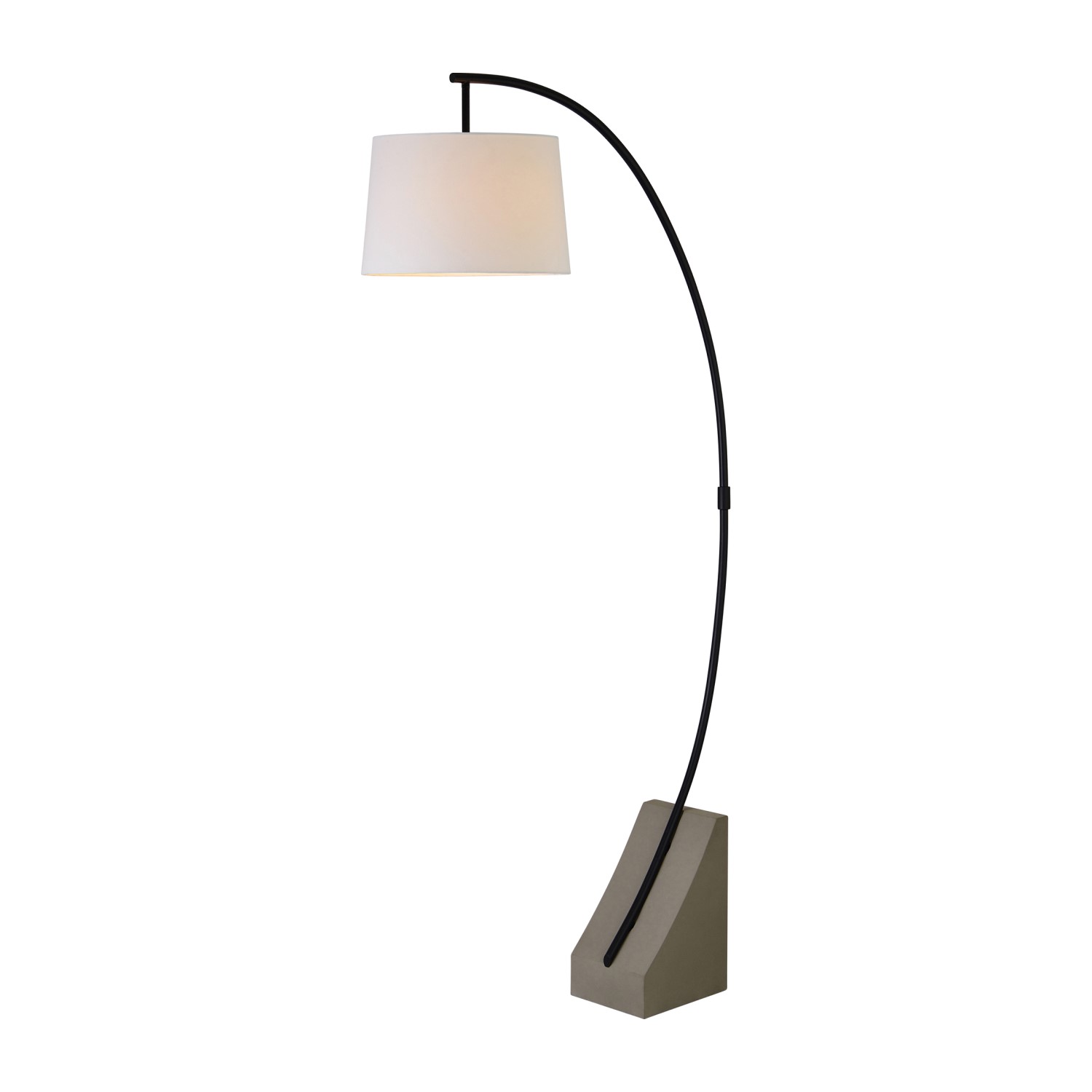 [0] => The Wesley Floor Lamp, by Jennifer Attie, has a design that is both airy and down-to-earth. Its slim arcing body of powder-coated iron with a matte black finish contrasts with a more substantial base of solid grey concrete. An off-white cotton shade and foot switch add the finishing touches to a lamp sure to spruce up any modern living space.