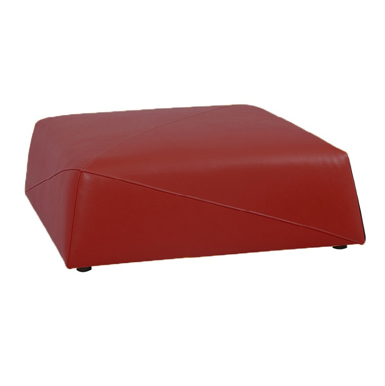 [0] => The Wesley Ottoman, available in red, features a trapezoidal shape that is ideal as a footrest or as additional seating. The matching stiching creates subtle triangular shapes on the top and sides, creating a clean design that can fit in any contemporary space.