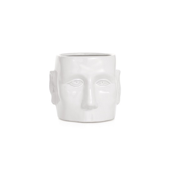 [0] => The White Face Vase is part sculpture and part vase, depicting a face with a neutral expression rendered in white. Perfect as a receptacle for plants, pens, and more, the White Face Vase can bring a sense of life to your shelf space, or a bright accent to your desk, tabletop, or credenza.